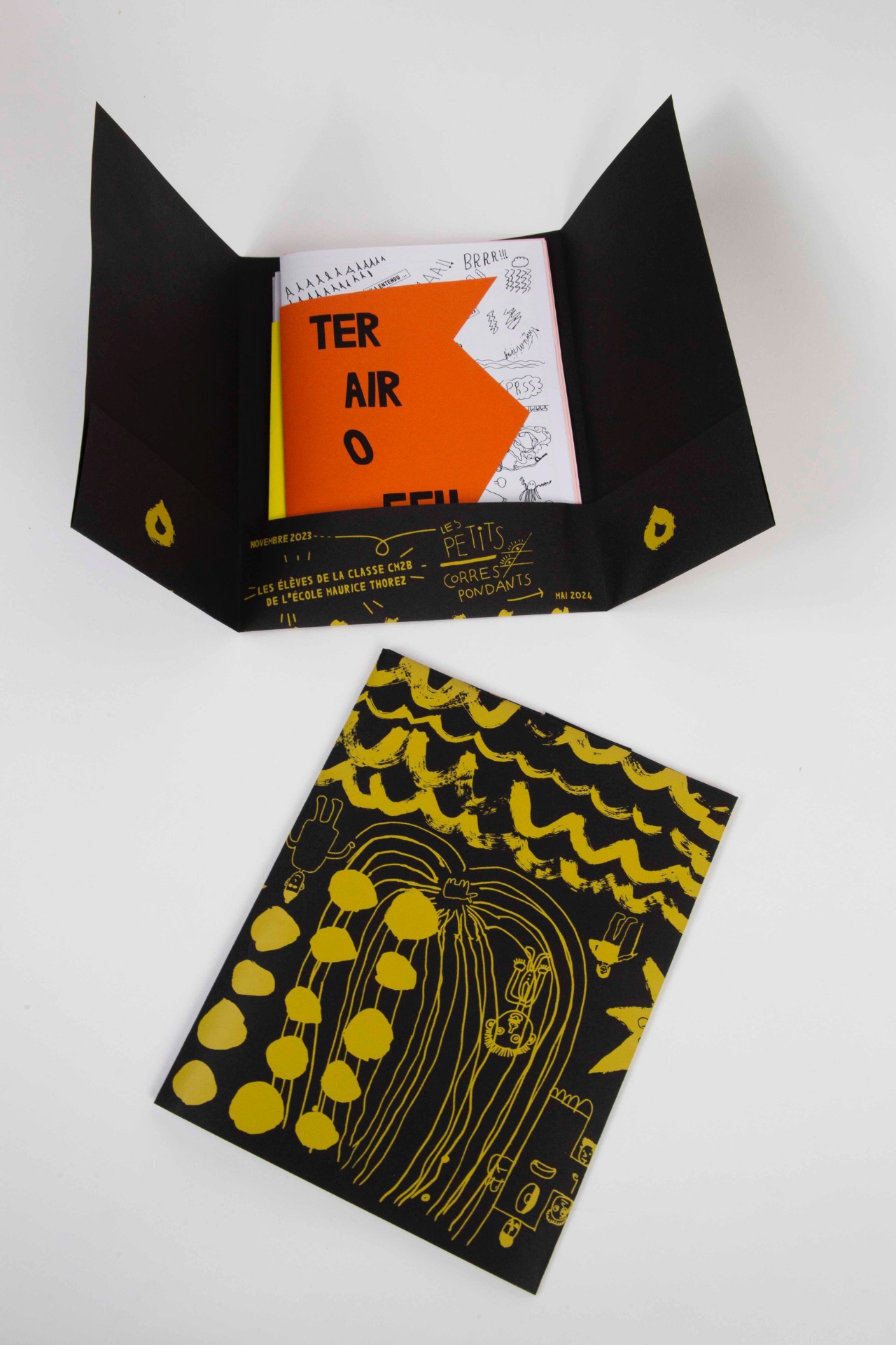 Clara Jodon et Lucia Rios (Chargée d’action culturelle et relations publiques à Antoine Vitez), Laura et Vincent les enseignant·es de CP et CM2 de Makarenko