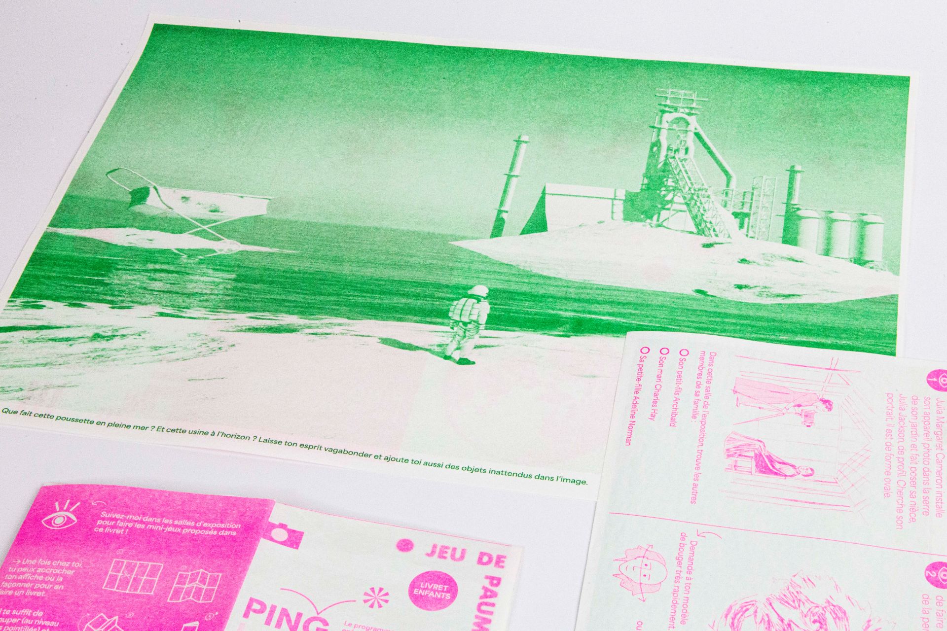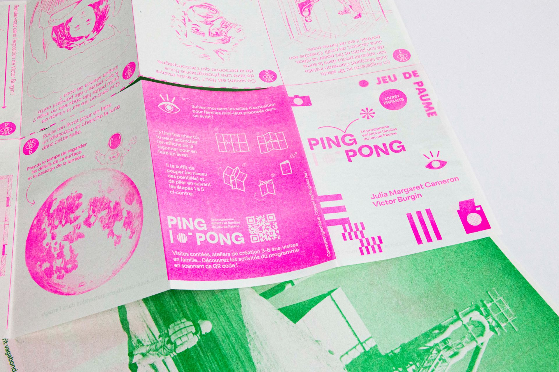 Le livret de jeux, à destination des enfants, est réalisé dans le cadre du programme d’animation pour jeune public “Ping-Pong”. Cette affiche-livret est un support pour découvrir les coulisses de la réalisation d’une image ou d’une œuvre grâce à des jeux graphiques liés à l’exposition en cours.