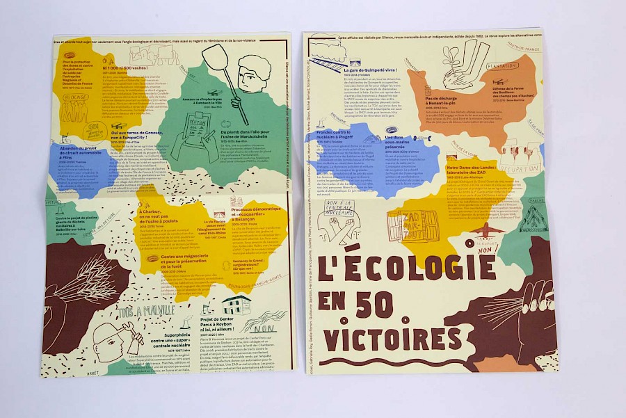 À l’occasion de ses 40 ans de parution en 2022, la revue écologiste indépendante S!lence publie en octobre 2022 un dossier spécial sur "Les victoires de l’écologie" et, en parallèle de cela, une grande affiche qui présente une carte de France des victoires de l’écologie.