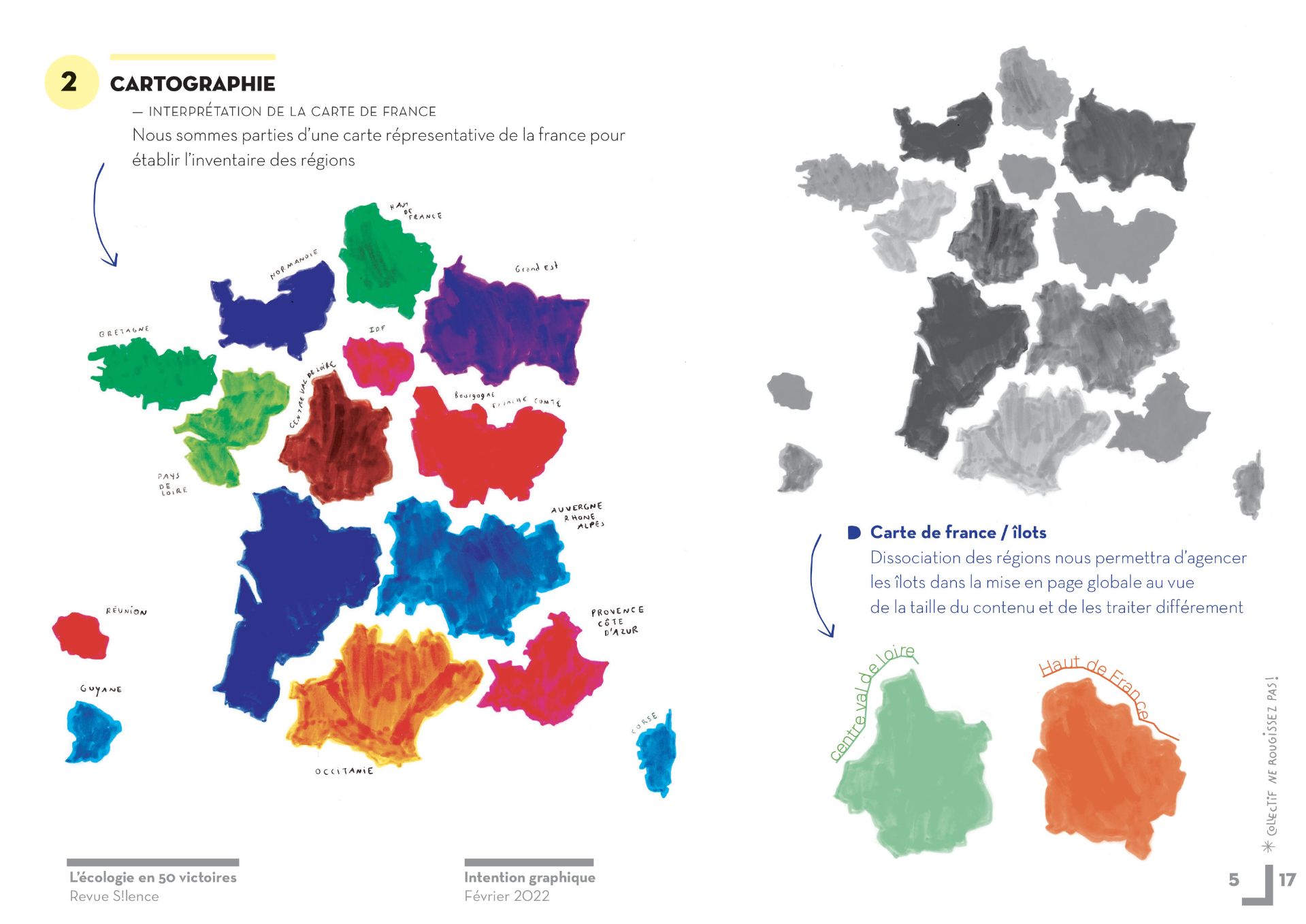 La représentation de la territorialisation des luttes était un objectif majeur dans la conception de cet objet papier. La carte géographique est un outil permettant de mettre en relation des notions et des espaces spécifiques.