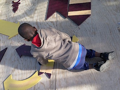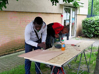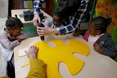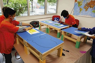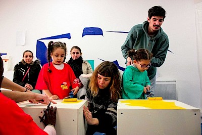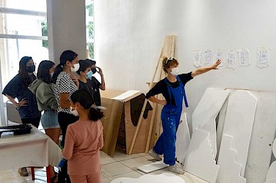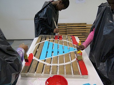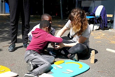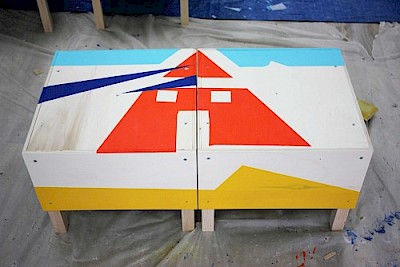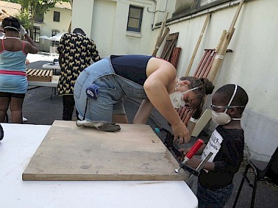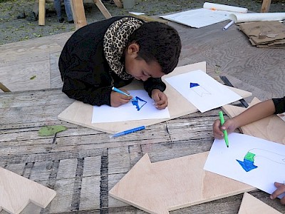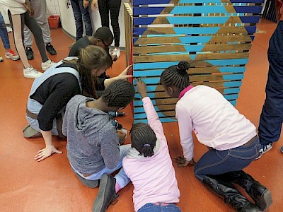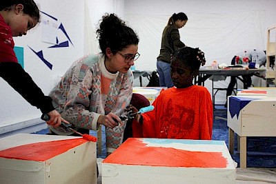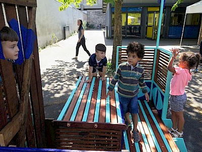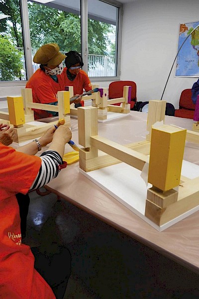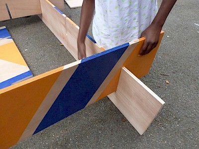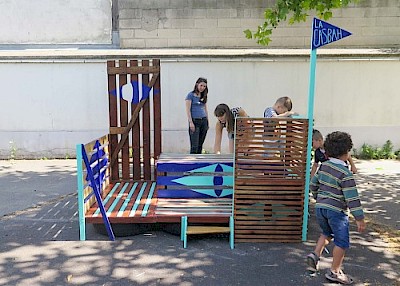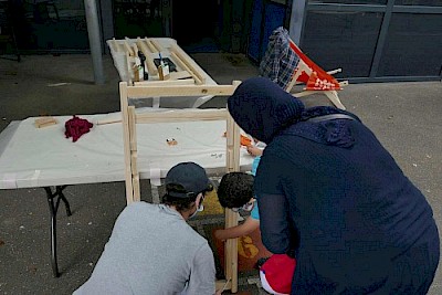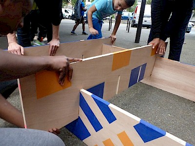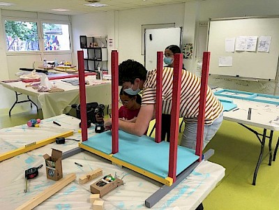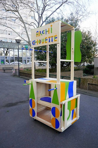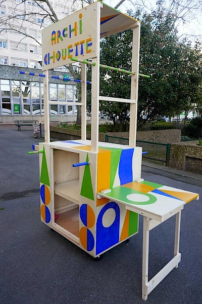 Dans le cadre des stages Archichouette proposés par le CAUE 95, les enfants de la Maison de Quartier d’Argenteuil ont réalisé une série de maquettes pour définir les usages d’un futur kiosque à roulettes pour l’Esplanade Salvador Allende. En février 2022, le temps d’une semaine, nous sommes venu·es pour réaliser un chariot en bois , peint grandeur…