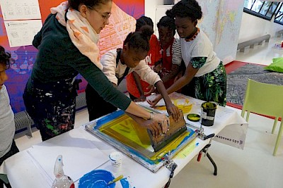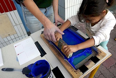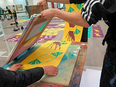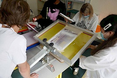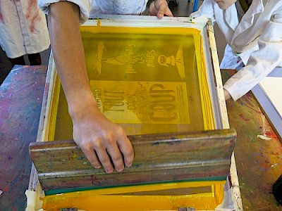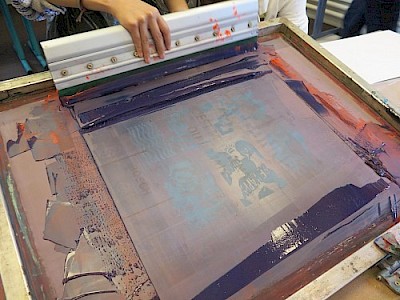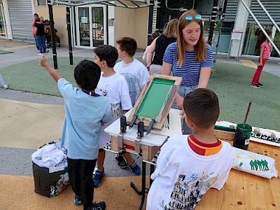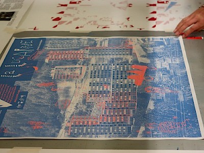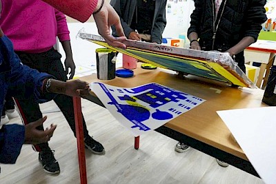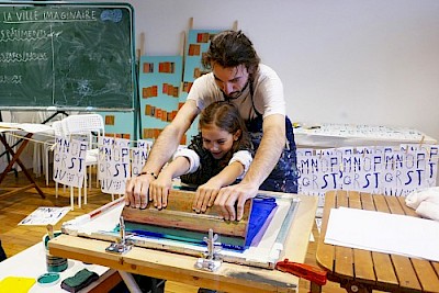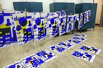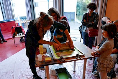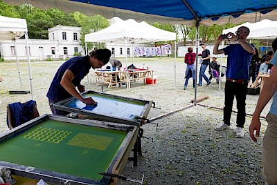 Atelier de sérigraphie personnalisable Nous avons pensé un atelier pour sensibiliser à la sérigraphie, qui est un procédé d’impression technique complexe et peu flexible. Chaque participant est invité à concevoir une représentation personnelle de la ville, à dessiner son image, puis à fabriquer à la main son typon à l’aide d’une technique…