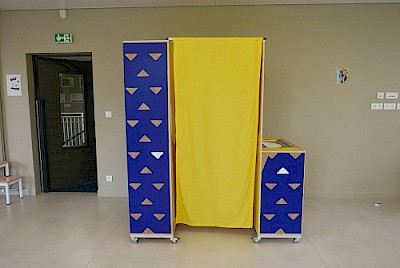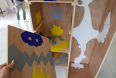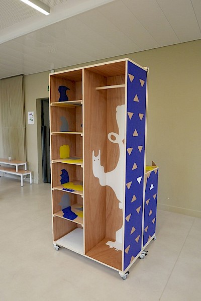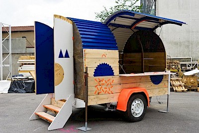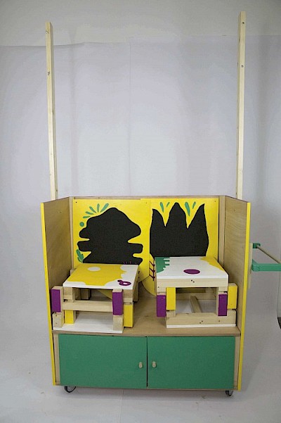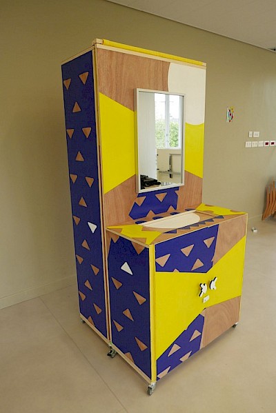 M.A.P - Mobilier d’Amusement Participatif Meubles à double emploi utilité/jeu pour la Maison de Quartier du Petit-Ivry. - La faille de transformation : malle et cabine de déguisement. - Nous avons construit des objets modulables et ludiques afin de permettre plus aisément une communication sociale par le jeu et faire jouer adultes et enfants, tout…