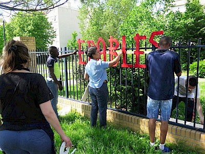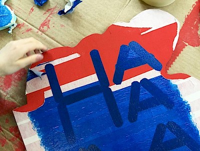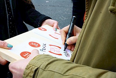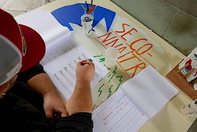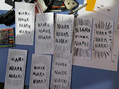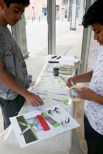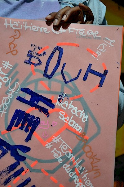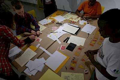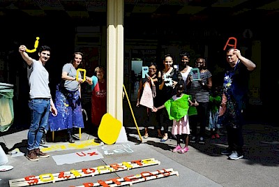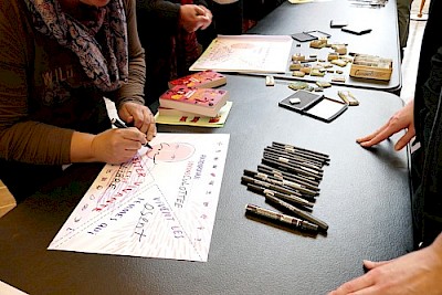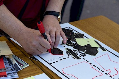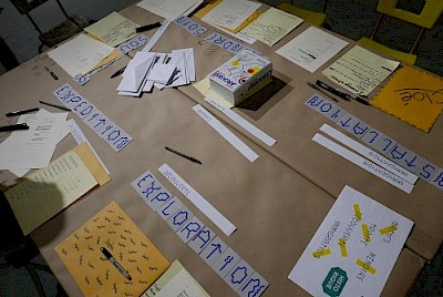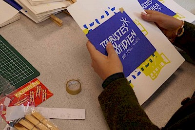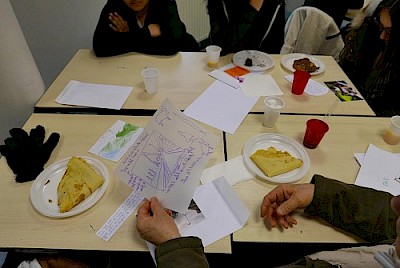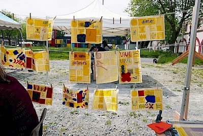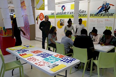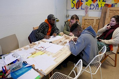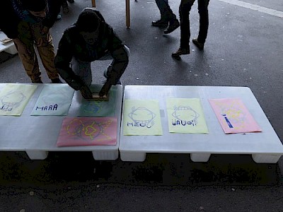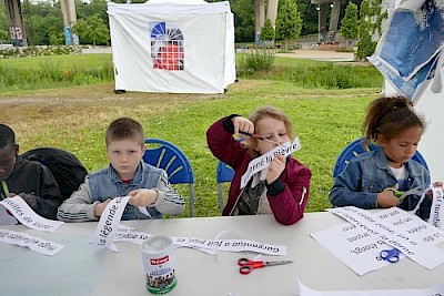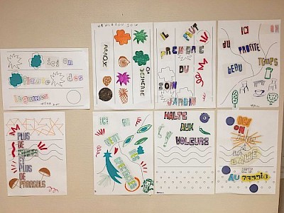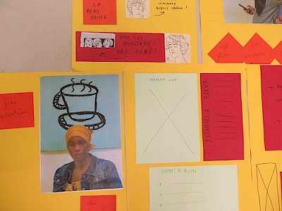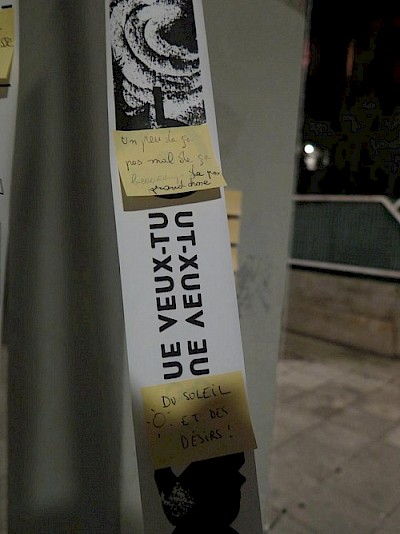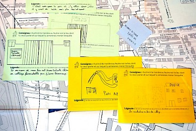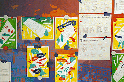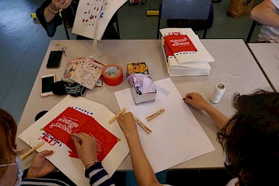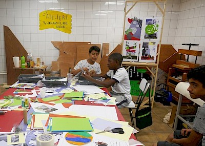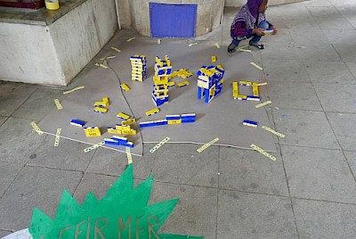 Atelier d'affiches volantes Nous avons proposé un atelier d’affiches où sont mêlées recherche textuelle et création graphique. Autour de la revendication individuelle et collective de la vie du quartier, les participants ont été amenés à débattre et échanger. Ils ont complété ensuite des phrases insolentes et vivantes pour traduire leur envies…