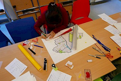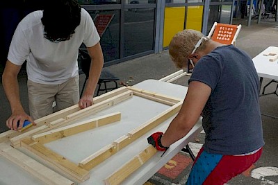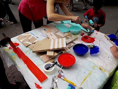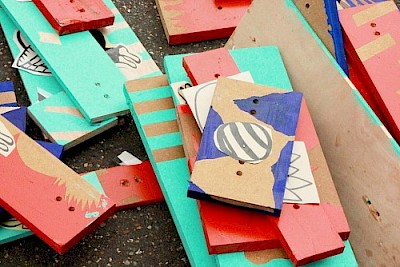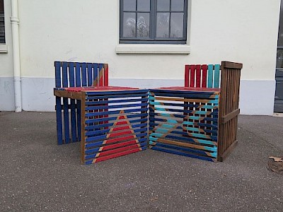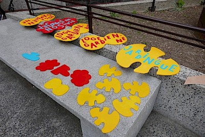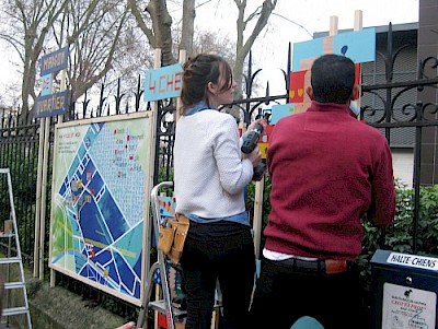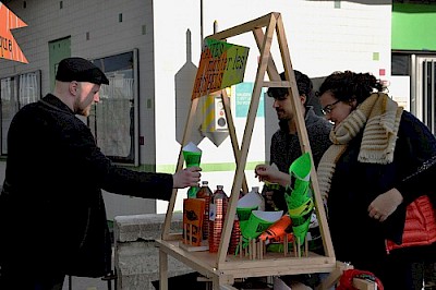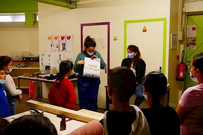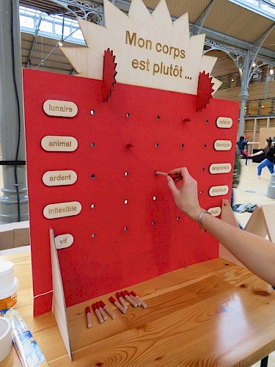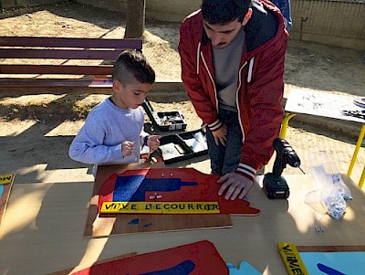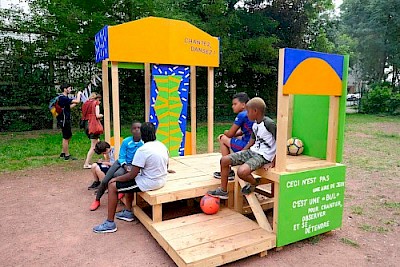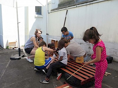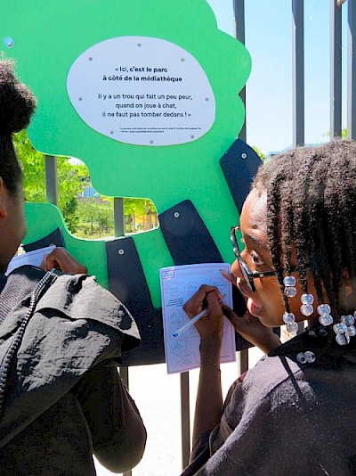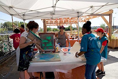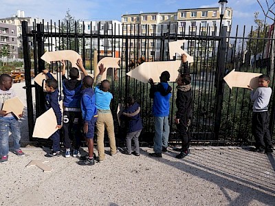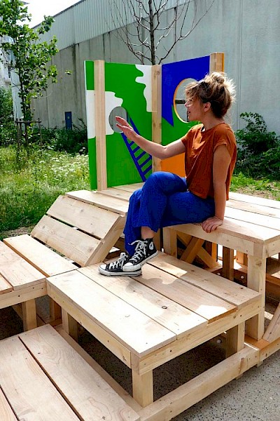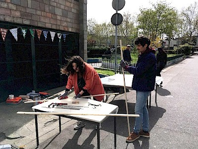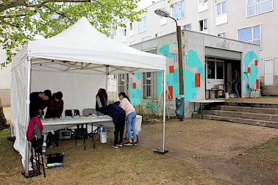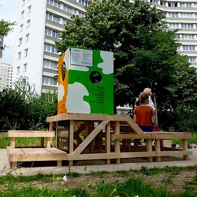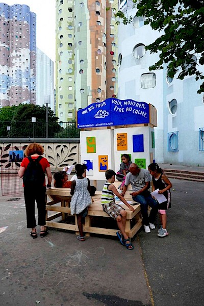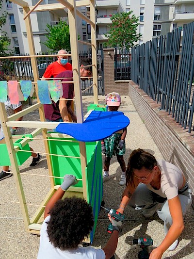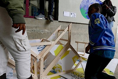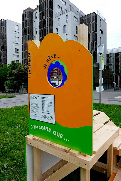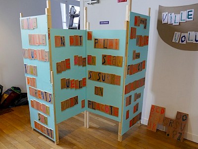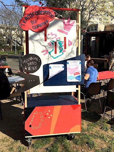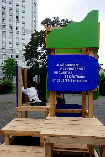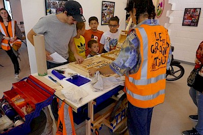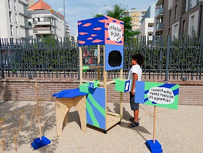 Invités par le Conseil Citoyen, le collectif est intervenu sur 3 temps d’ateliers-chantiers pour concevoir et fabriquer un arbre à idées avec les habitant.es du quartier. L’arbre à idées, installé dans la Maison du Projet, permet de questionner les habitants sur leur quartier. Les quatre faces du dispositif offrent la possibilité aux petits…