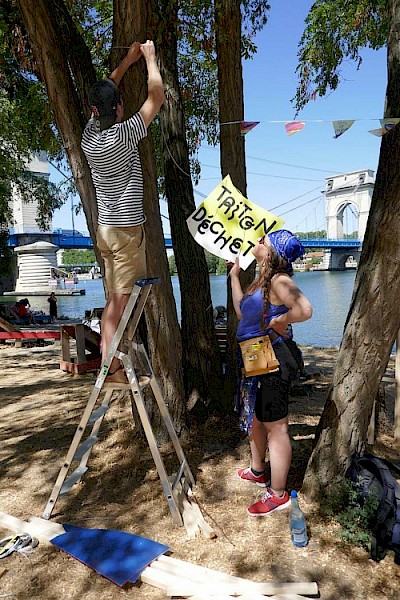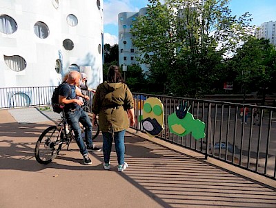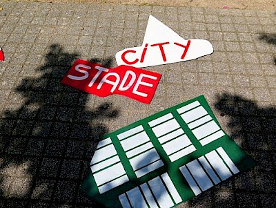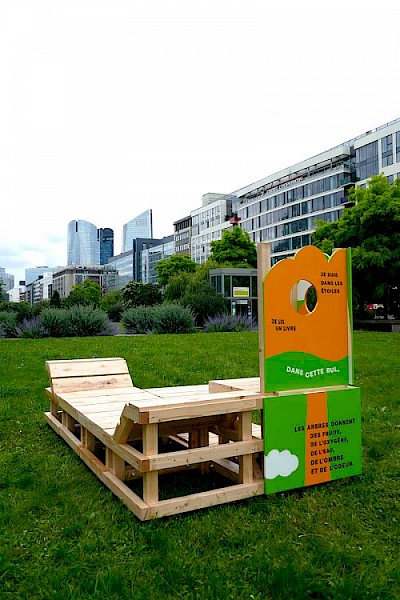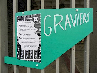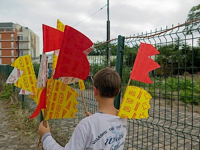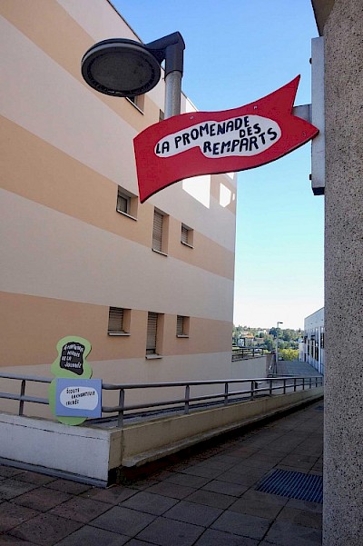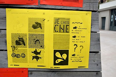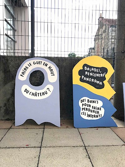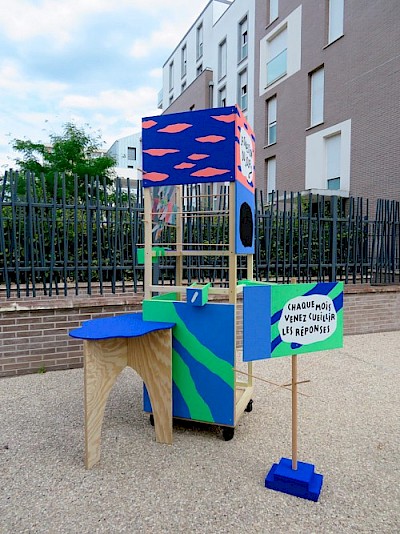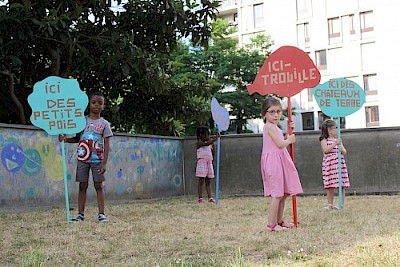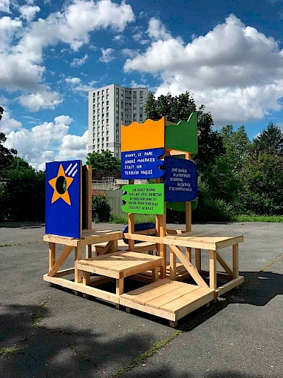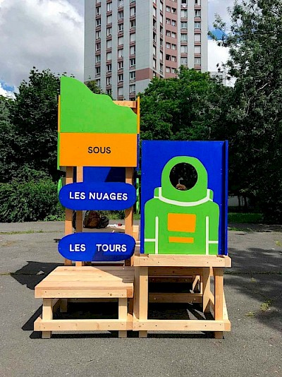 Notre collectif a été invité par Chantier Public à Poitiers en juillet 2021, pour une résidence artistique dans la résidence Rivaud. Pendant une semaine, nous avons construit une signalétique pour lire 4 prismes très particuliers de la cité : les bons plans pour y découvrir les trésors cachés ; les directions pour y retrouver les amoureux perdus…