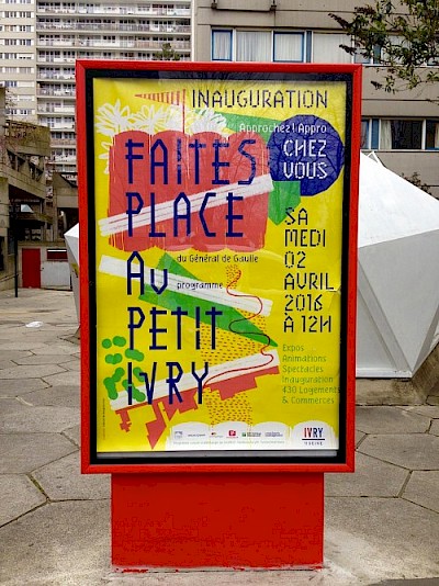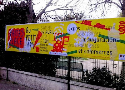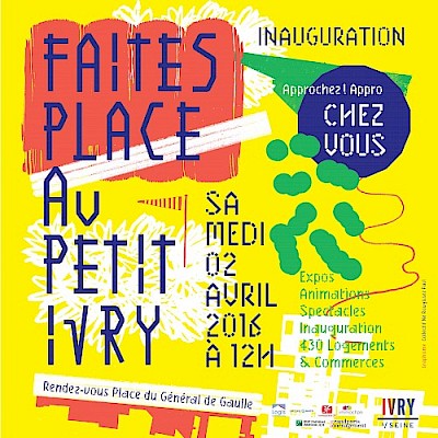 Conception et réalisation de la communication pour l'inauguration de la livraison de la Place du général De Gaulle à Ivry-sur-Seine sur la ZAC du Plateau. Déclinaisons sur tous types de supports : Affiche Decaux, programme plié, kakémono 120 x 90, bâches intissées, Fond de scène, totems et application de la charte sur les supports numériques des…