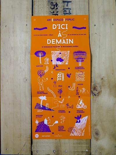 Projet d'identité graphique du cycle de conférences sur l’Art & l’Espace Public Création d’un univers graphique faisant référence au territoire, à la circulation dans la ville. Réalisation de supports de communication papier et numérique Commanditaire par l’association Object Public et coordonné par le Master PCEP de la Sorbonne Impression off…