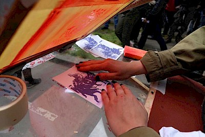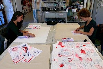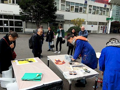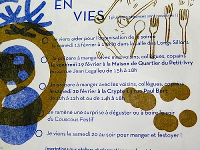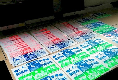 Dans le cadre de différents événements portés par des municipalités dans l’espace public, notre collectif est intervenu pour imprimer en sérigraphie en direct des objets papiers. Nous sommes venus sur 3 événements : à Nanterre pour la “Fête de la vie associative”, pour “Ivry en fête” à Ivry-sur-Seine et “La fête du métro” à Bagneux, où nous avons…