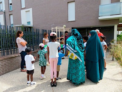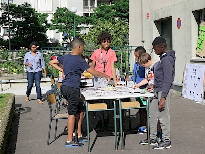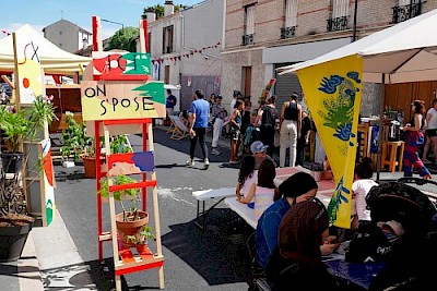 Fête des voisins aux Longs Sillons ! L'idée était de convier les habitants du quartier et des rues alentours à partir de 17H pour se retrouver en toute simplicité et convivialité. Nous avons apporté quelques jeux pour petits et grands, ainsi qu'un atelier de gazette, mis un peu de musique et quelques guirlandes lumineuses, et invité tout le monde…