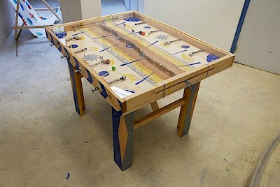 Dans le cadre de l’exposition “Le Génie des Lieux” à l’Espace d’Art la Terrasse à Nanterre, notre collectif a créé une installation de présentation du projet “Fabul 2” pour valoriser le projet et les productions réalisées par les participant.es. Nous avons réalisé une grande table basse sur laquelle sont disposées l’ensemble des maquettes…