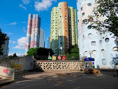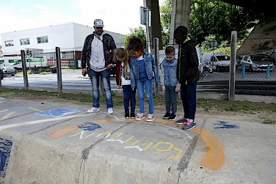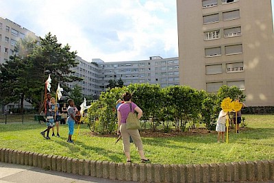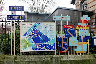 Dans le cadre du projet culturel « c’est ma ville » , mis en place par la ville de Villeneuve-Saint-Georges, notre collectif a décidé avec le CAUE du Val-de-Marne et les enfants du centre de loisirs Saint-Exupéry d’explorer une partie des grands ensembles du quartier Nord de la ville et de créer une signalétique illustrant les particularités…