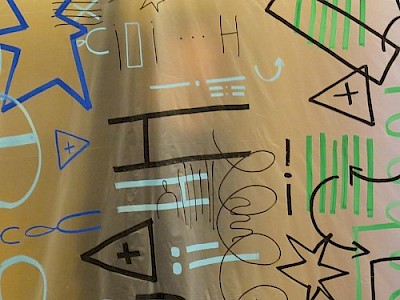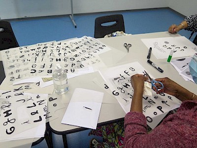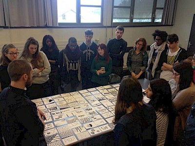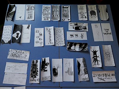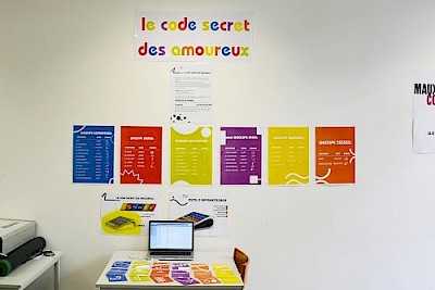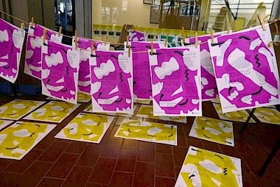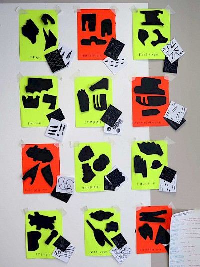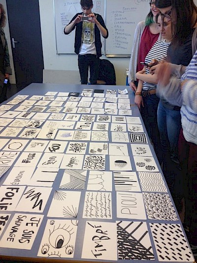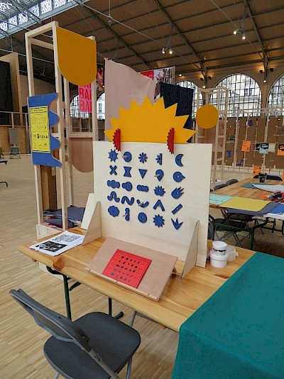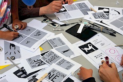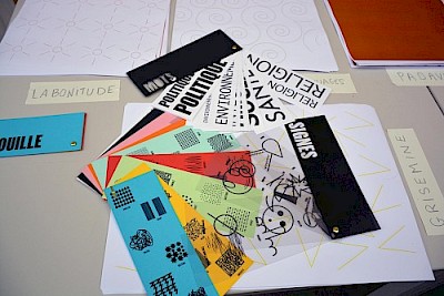 Invention en groupes d'un nouveau langage visuel A partir des thèmes des différents projets des étudiants, nous proposons sur le long de la semaine de créer un projet plus transversal et collectif, en petits groupes. Après une matinée de réflexion et de recherches de références, nous proposons d'inventer une langue / un système…