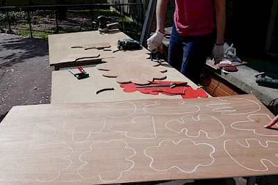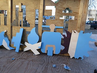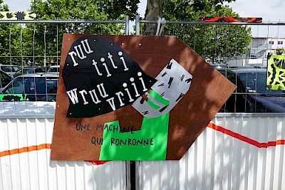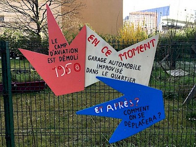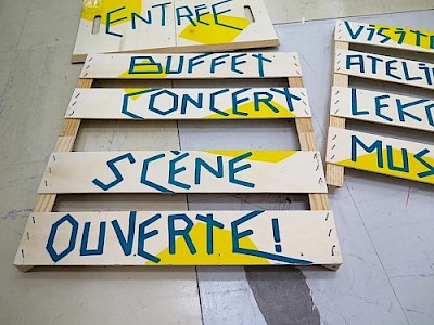 Sous l’invitation des étudiant·es du master PCEP (Projet Culturel dans l’Espace Public), notre collectif est venu pendant une semaine participer à la fabrication de plusieurs panneaux de signalétique pour habiller la cité Rose à Nanterre. Production finales : 1 série de 8 panneaux “tryptique” 1 série de 6 panneaux “onomatopée” 12 éléments en bois…