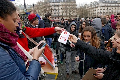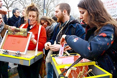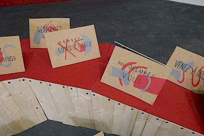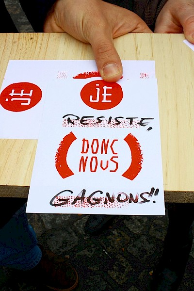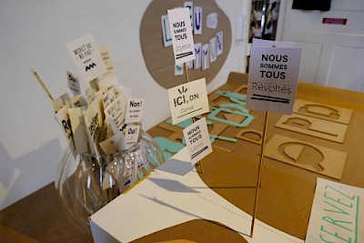 Je ... donc nous ... est un dispositif de récoltes implicatives et de diffusion active, lors de Nuit Debout, à Paris. À travers un texte à trou, nous avons invité les manifestants à fabriquer leur propre slogan et à l’utiliser directement pendant les marches de contestation. Les ouvreuses ont été fabriquées dans un souci de mobilité, afin…