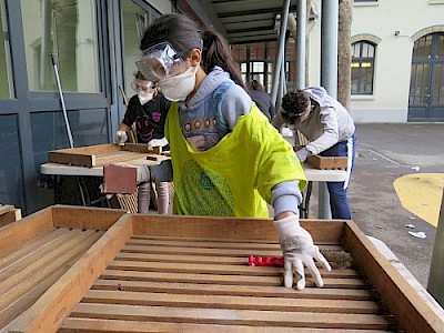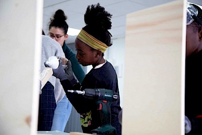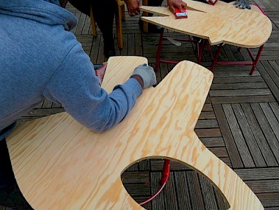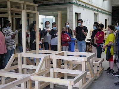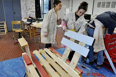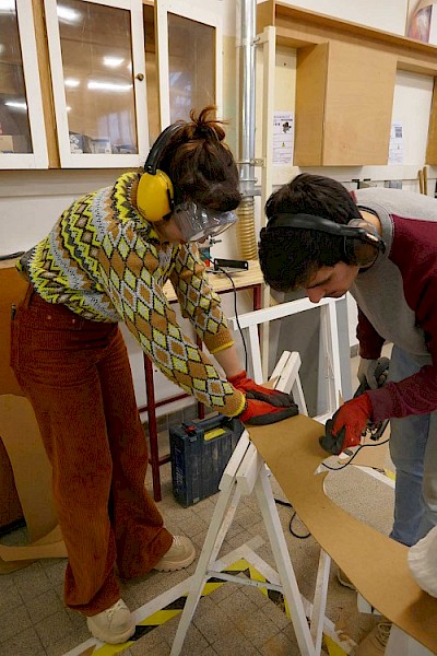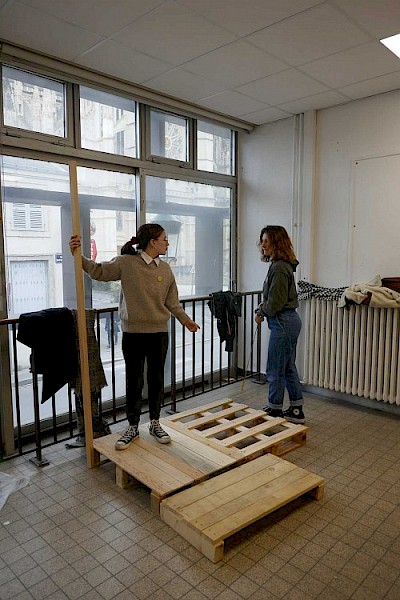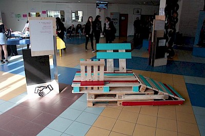 Le collège de Montigny-lès-Cormeille manque de présentoirs d’expositions des travaux d’arts plastiques. Le CAUE 95, camarade de longue date, ainsi que la professeure d’arts plastiques nous ont invité à réaliser en ateliers de construction avec une classe de 4ème, plusieurs mobiliers de présentation type chevalet. Sur deux jours…