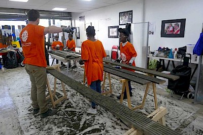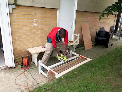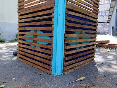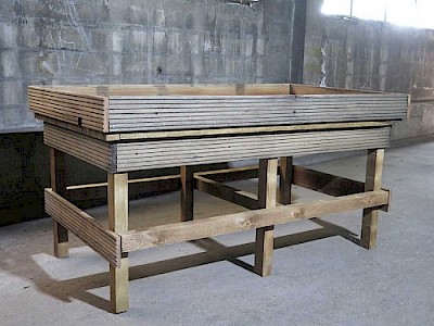 Entre octobre et novembre 2021, notre collectif est revenu au « Local qui sourit » de Villeneuve-Saint-Georges, pour réaliser en chantier participatif une vingtaine de tables de culture de plans pour la future pépinière agricole sur la dalle des Graviers au quartier Nord de Villeneuve. L’ensemble des matériaux sont issus d’une démarche de réemploi…
