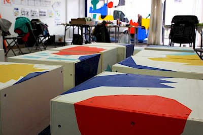 M.A.P - Mobilier d’Amusement Participatif Meubles à double emploi utilité/jeu pour la Maison de Quartier du Petit-Ivry. - Les vaisseaux du futur : table basse de construction. - Nous avons construit des objets modulables et ludiques afin de permettre plus aisément une communication sociale par le jeu et faire jouer adultes et enfants, tout…