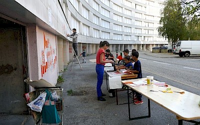 En s’inspirant du travail mené sur le livre « Sellier se la raconte » et à travers une démarche de création partagée avec les habitant·es, notre collectif a proposé de retravailler le langage graphique du livre et de la cité et de créer un récit mural : une fresque vivante de la cité Sellier, une tribune aux enfants qui la peuplent, réalisée par…