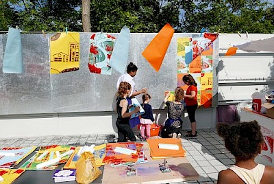 Dans le cadre de l'événement “Ô Berges d’été” à Massy, notre collectif est intervenu lors du premier week-end d’ouverture pour proposer un atelier créatif autour d’une grande fresque participative de 3 panneaux (ville, paysage et portraits). Les participant·es étaient invité·es à remplir ces trois fresques, constituant un triptyque, à l’aide…