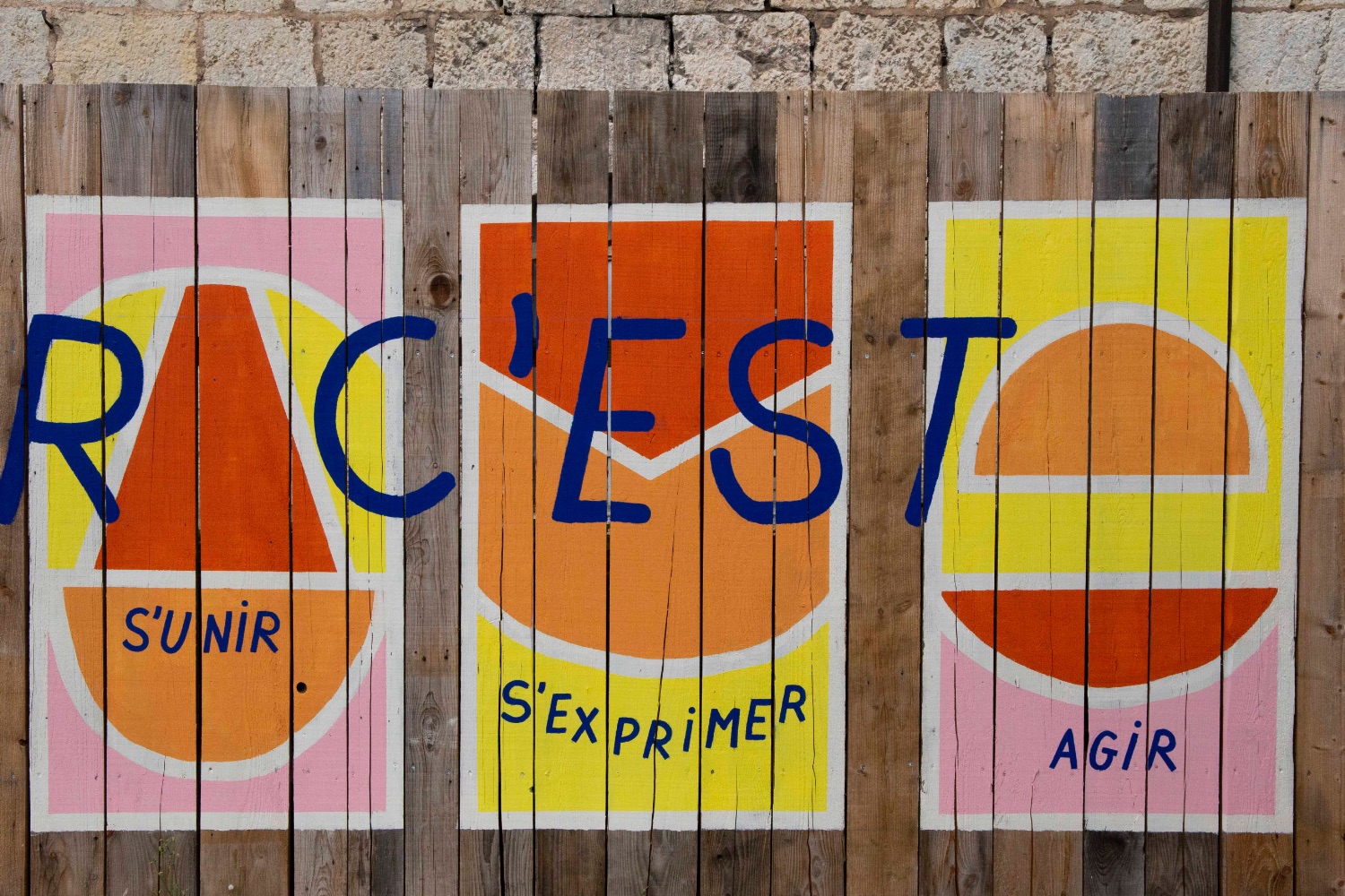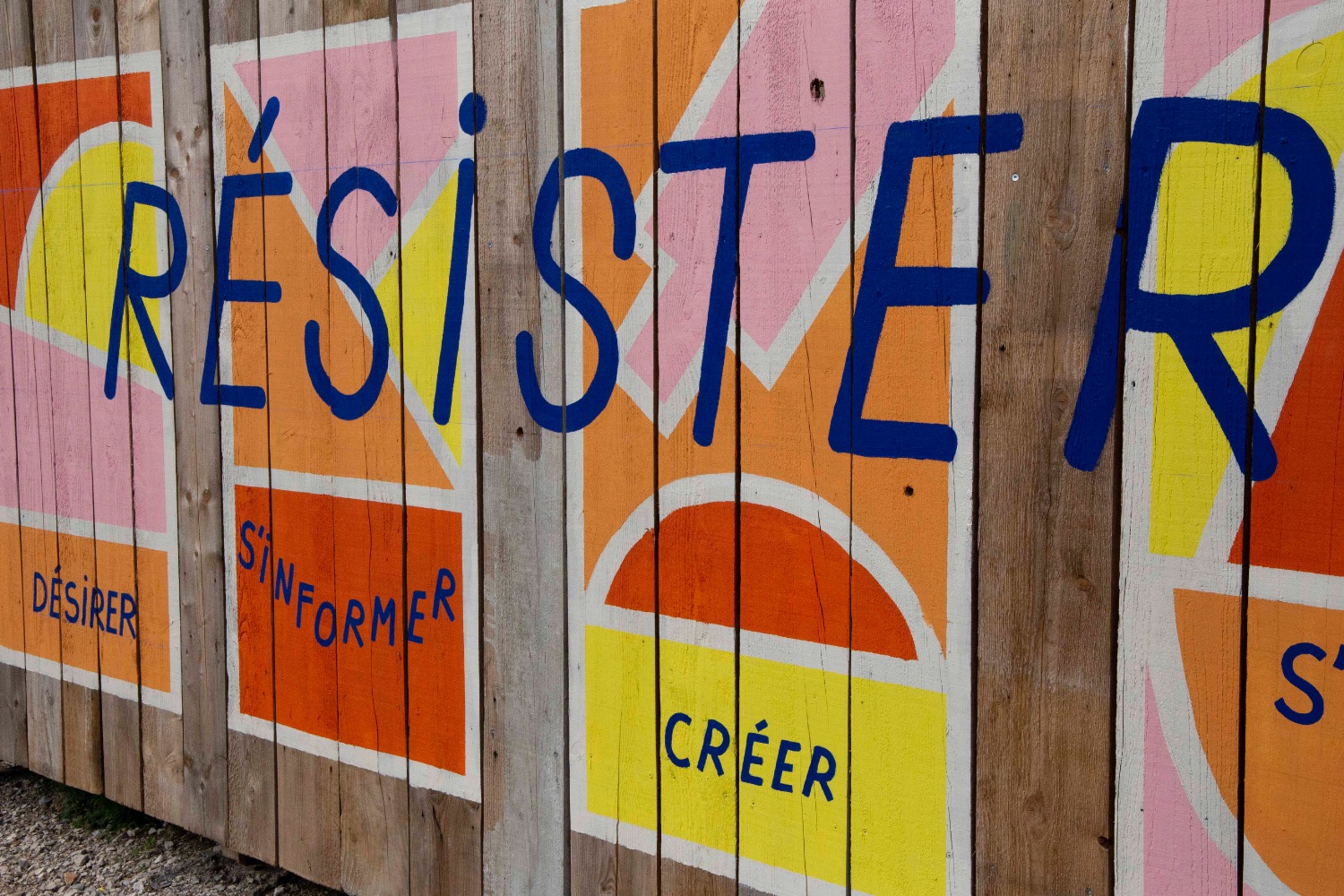 En parallèle, nous avons conçu et réalisé une fresque murale sur d’autres palissades de chantier autour de cette notion de résistance au quotidien afin de faire écho et de valoriser certaines paroles récoltées pendant la semaine.