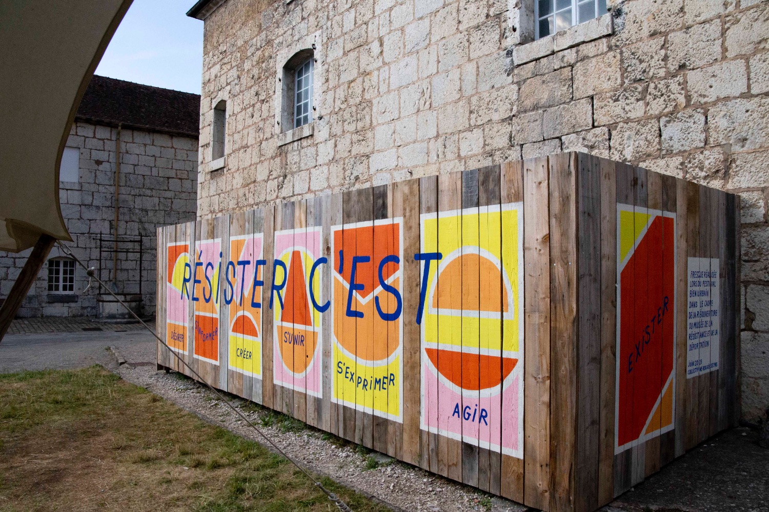 Notre collectif a pensé un dispositif de récoltes et de création d’affiches, avec le public de la Citadelle, sur la thématique de “La Résistance au quotidien” afin de créer une exposition éphémère sur la longue palissade du chantier et travailler en écho avec le fond d’archives et sur les thématiques du musée.