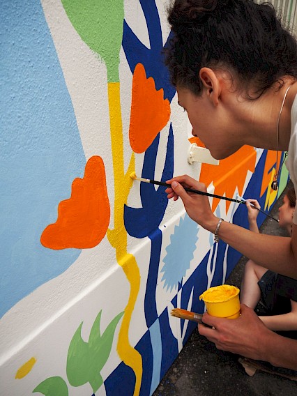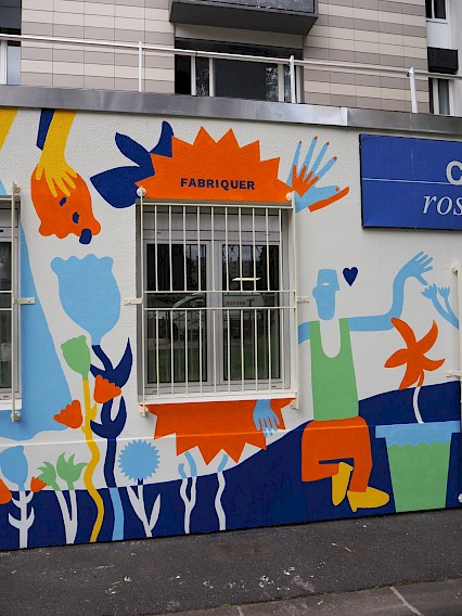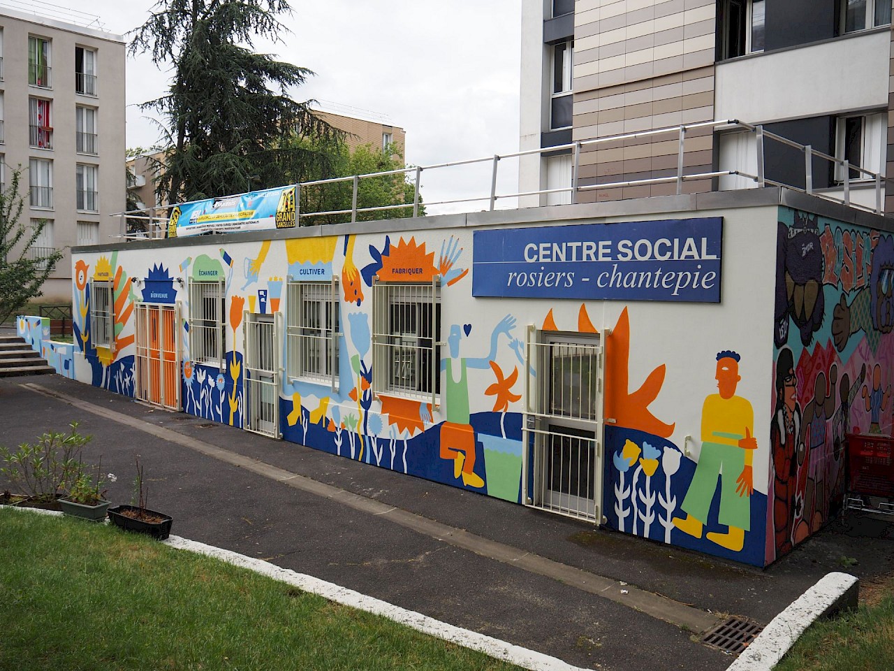 pour leur investissement leur engagement dans le projet. Nous avons fait l'experience de la création cvollective, du débat, du choix! Nous avons tenté au mieux de restitué les productions réalisées en atelier pour créer un ensemble visuel harmonieux et cohérent. Un grand merci l'équipe du Centre Social pour leur accueil chaleureux,leur confiance et et leur générosité, Un remerciement à Nassim, Atoumina Merci à CDC habitat, à l'Apes et Seqens pour leur confiance