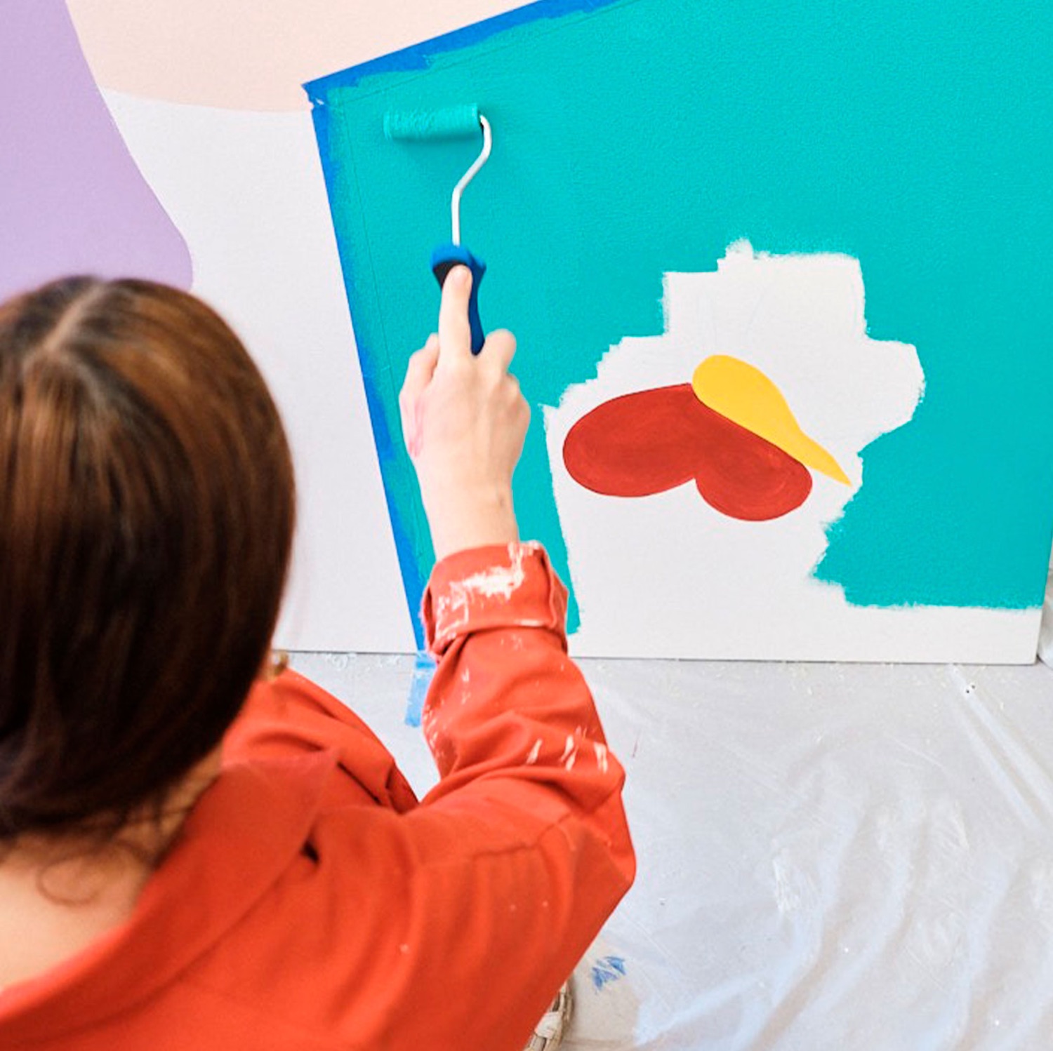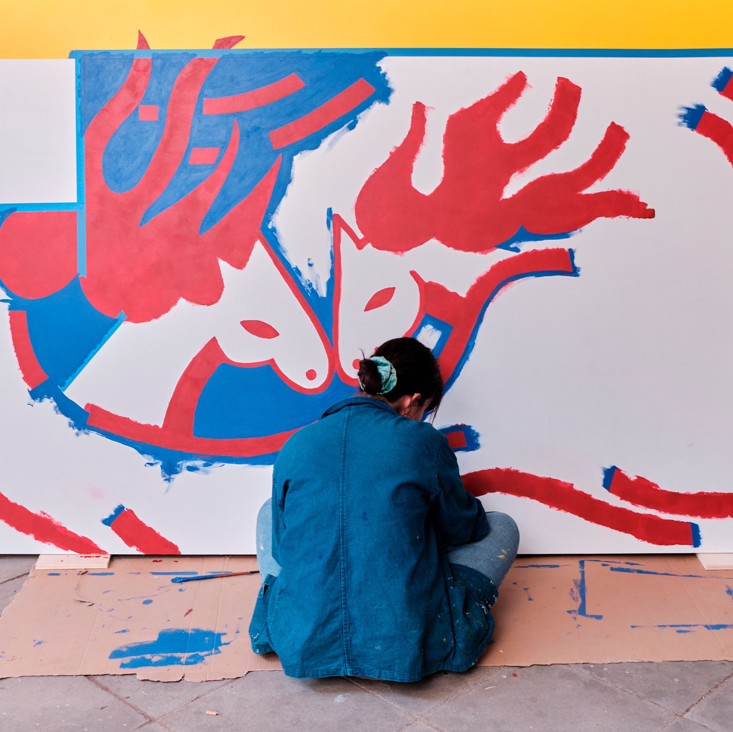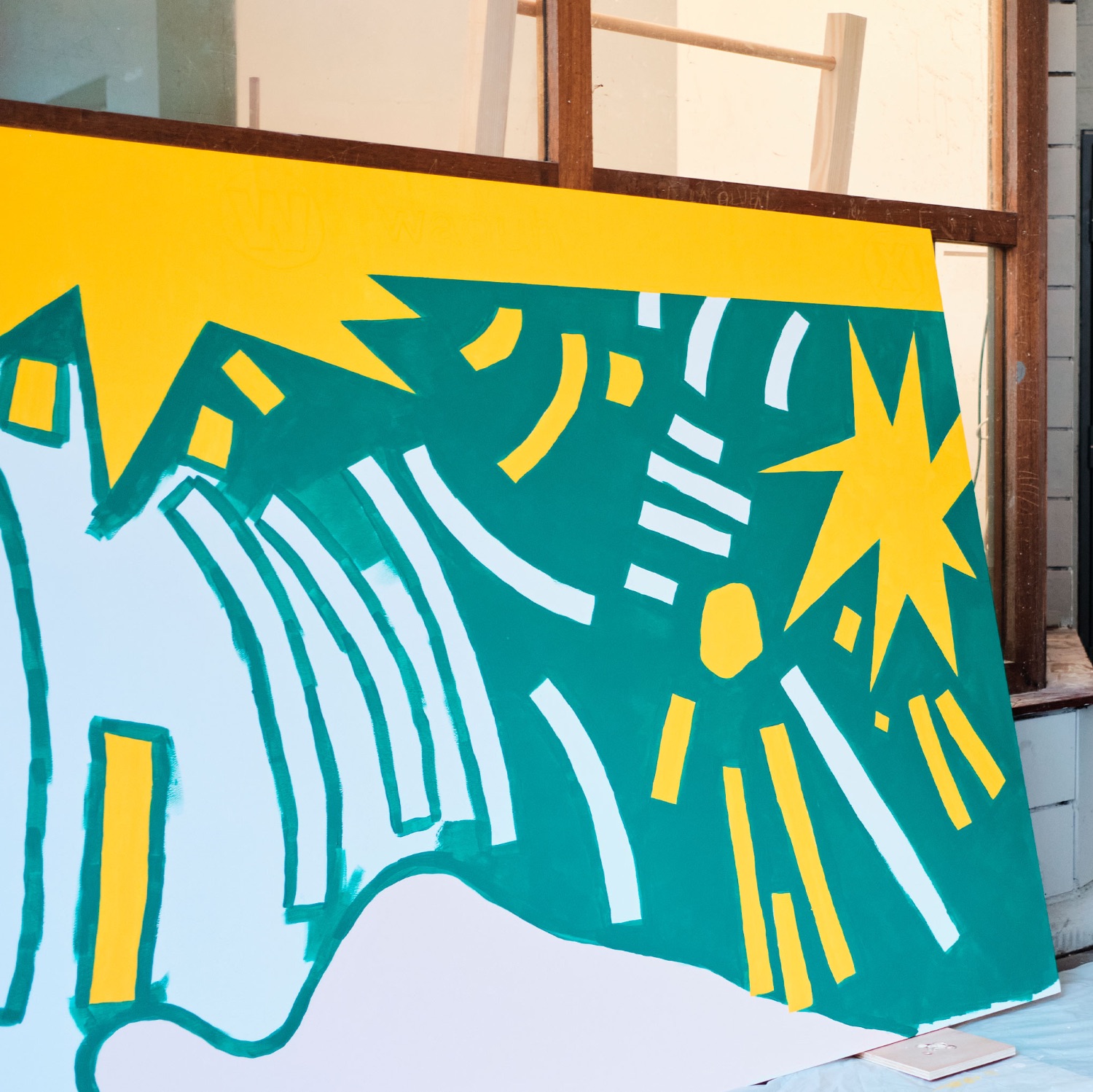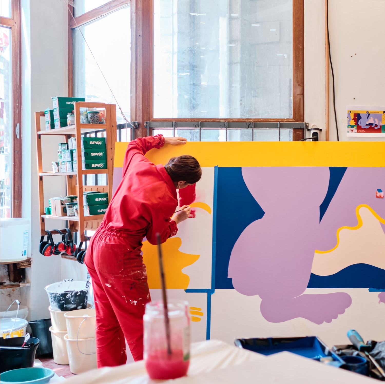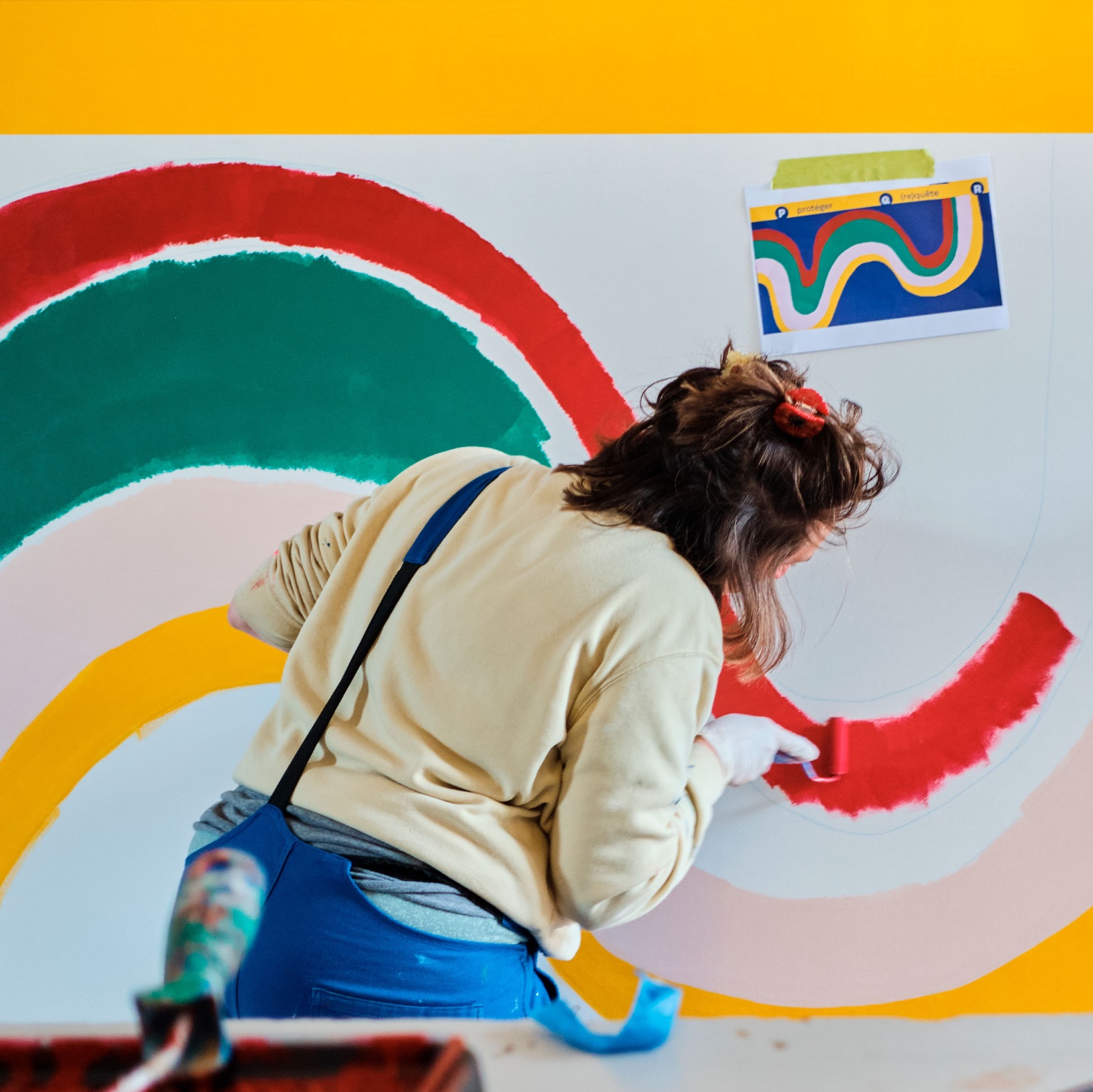Conception et réalisation d’une fresque murale sur une palissade de chantier.