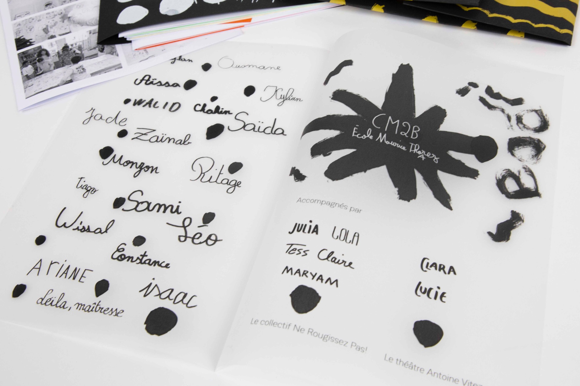 Clara Jodon et Lucia Rios (Chargée d’action culturelle et relations publiques à Antoine Vitez), Laura et Vincent les enseignant·es de CP et CM2 de Makarenko
