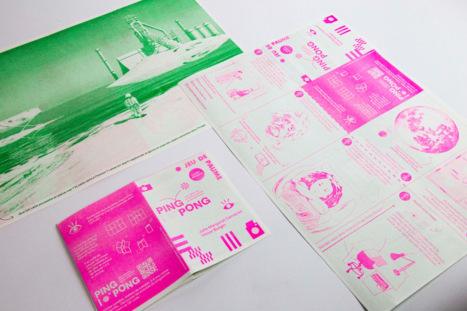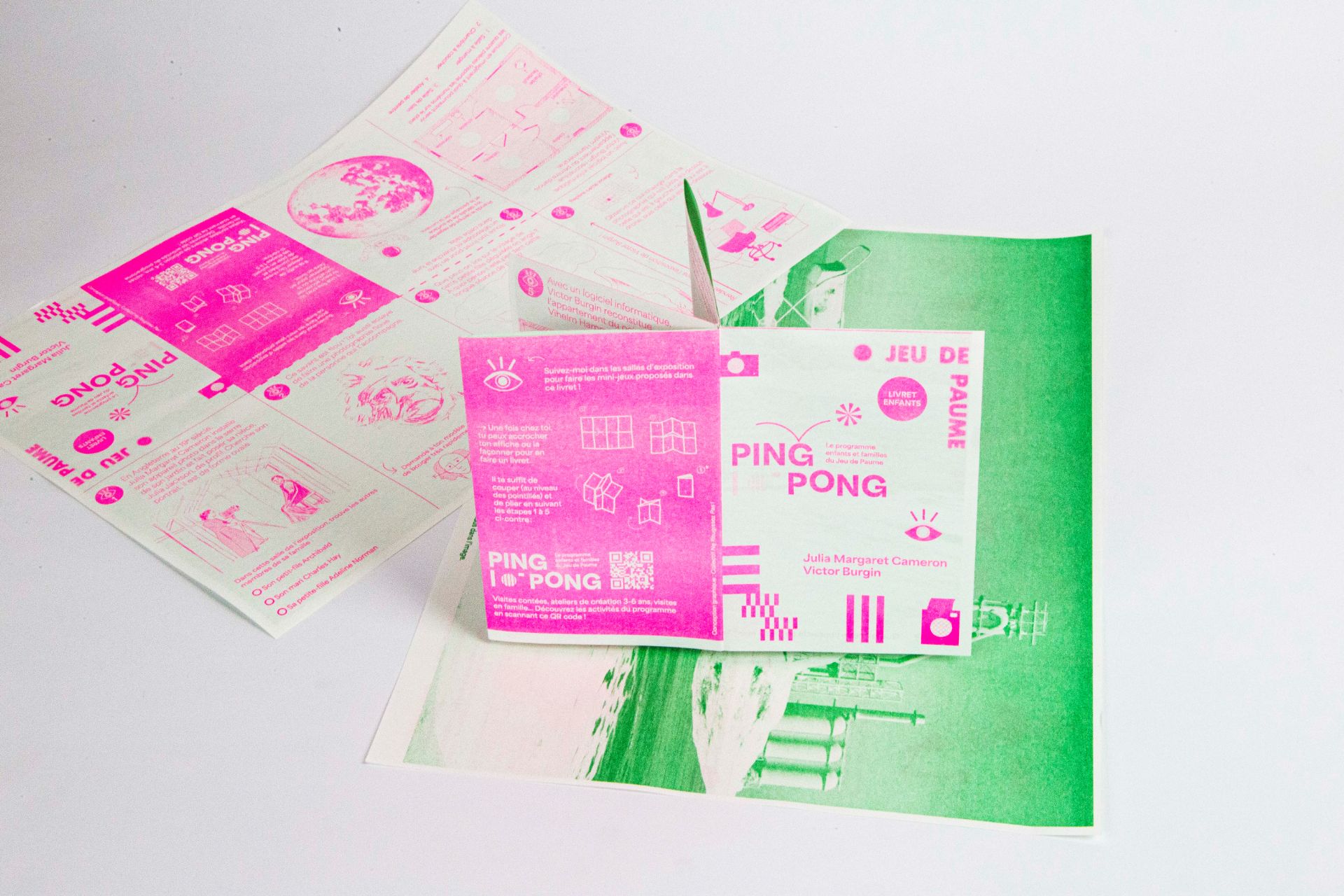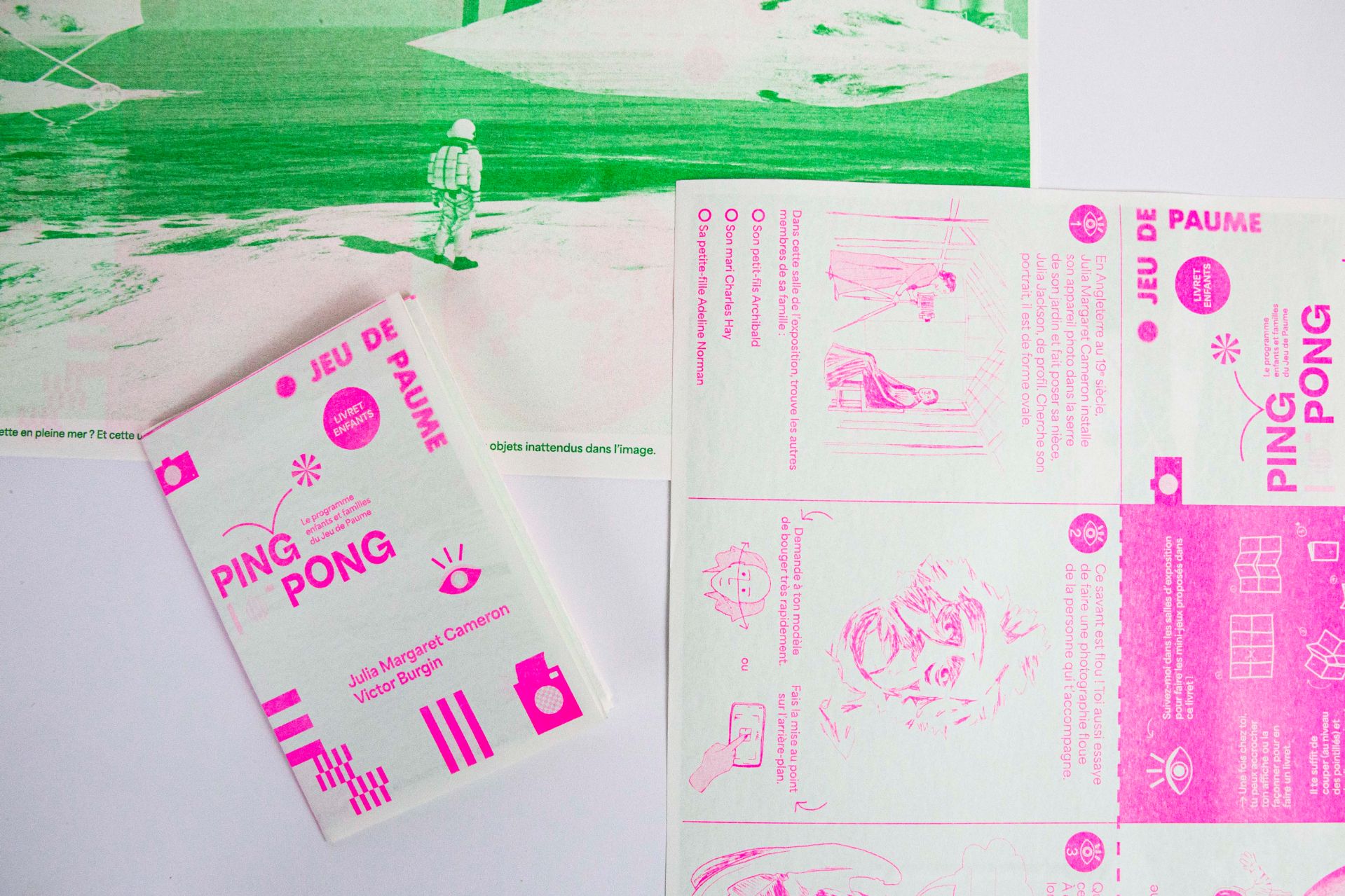Le livret de jeux, à destination des enfants, est réalisé dans le cadre du programme d’animation pour jeune public “Ping-Pong”. Cette affiche-livret est un support pour découvrir les coulisses de la réalisation d’une image ou d’une œuvre grâce à des jeux graphiques liés à l’exposition en cours.