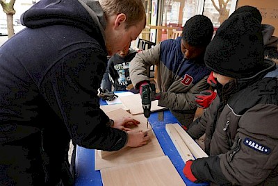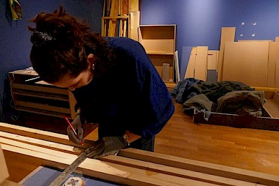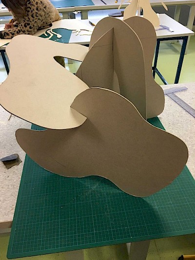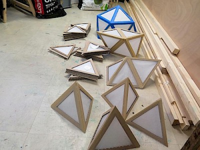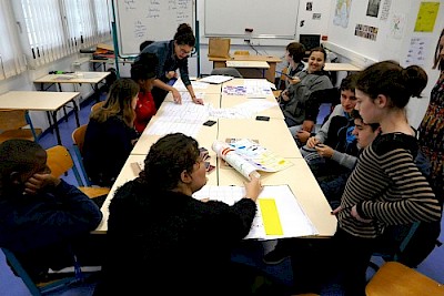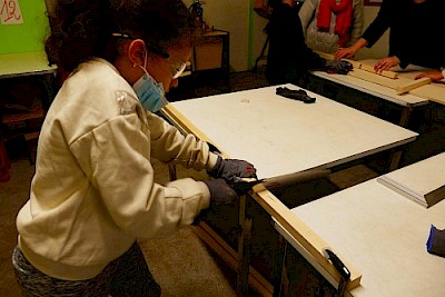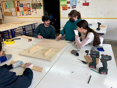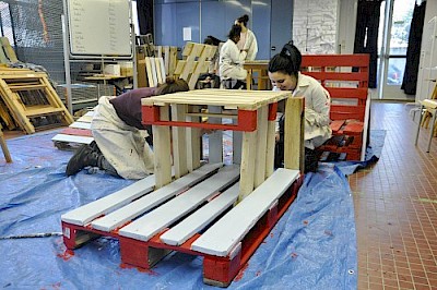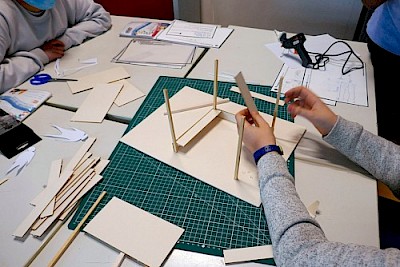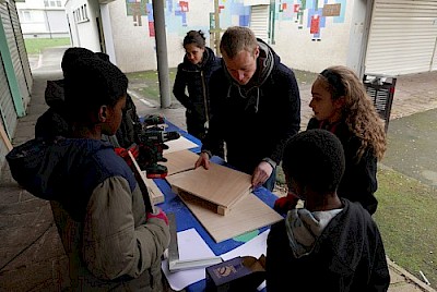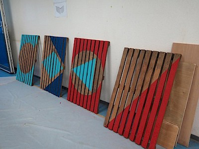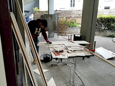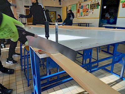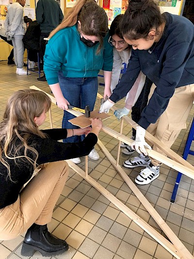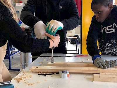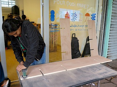 Le collège de Montigny-lès-Cormeille manque de présentoirs d’expositions des travaux d’arts plastiques. Le CAUE 95, camarade de longue date, ainsi que la professeure d’arts plastiques nous ont invité à réaliser en ateliers de construction avec une classe de 4ème, plusieurs mobiliers de présentation type chevalet. Sur deux jours…