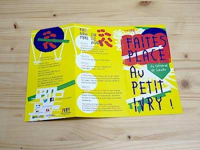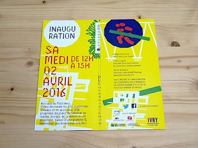 Conception et réalisation de la communication pour l'inauguration de la livraison de la Place du général De Gaulle à Ivry-sur-Seine sur la ZAC du Plateau. Déclinaisons sur tous types de supports : Affiche Decaux, programme plié, kakémono 120 x 90, bâches intissées, Fond de scène, totems et application de la charte sur les supports numériques des…