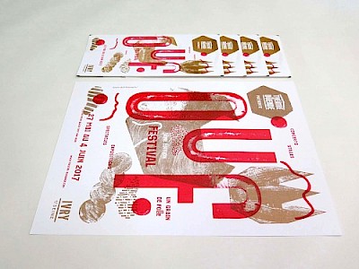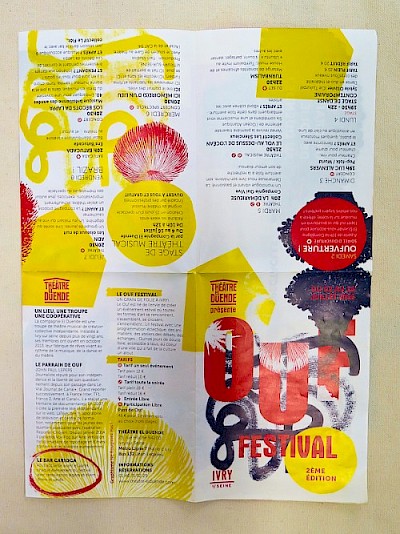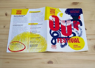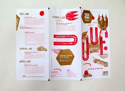 Trois éditions du Ouf festival Conception de la communication de l’événement et réalisation de différents supports de communications. Année 2017 Communication papier: Trois modèles d'affiches A3 en 200 exemplaires et un dépliant format fermé avec deux plis en 800 exemplaires faconnés à la main imprimés en risographie chez Après midi Lab Année 2015…