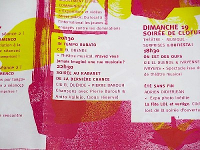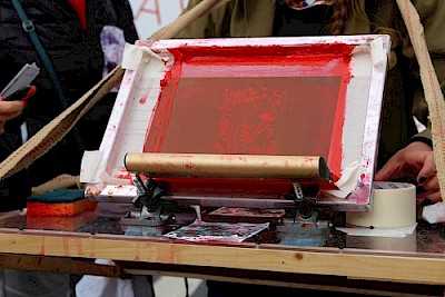 Dans le cadre de différents événements portés par des municipalités dans l’espace public, notre collectif est intervenu pour imprimer en sérigraphie en direct des objets papiers. Nous sommes venus sur 3 événements : à Nanterre pour la “Fête de la vie associative”, pour “Ivry en fête” à Ivry-sur-Seine et “La fête du métro” à Bagneux, où nous avons…