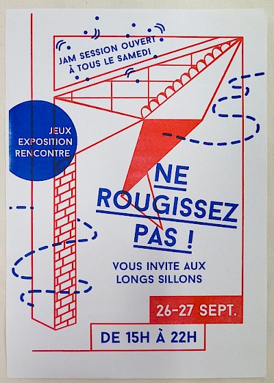 Réinvestir l'espace, Installation interactive autofinancée et initiée par le collectif Ne Rougissez Pas ! À l’occasion des Journées des portes ouvertes des Ateliers d’artistes de 2015, Le collectif Ne Rougissez Pas ! a investi l’espace public de la cité des Longs Sillons. Des installations légères, autonomes et temporaires ont constitué…