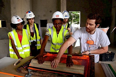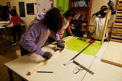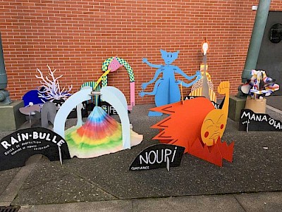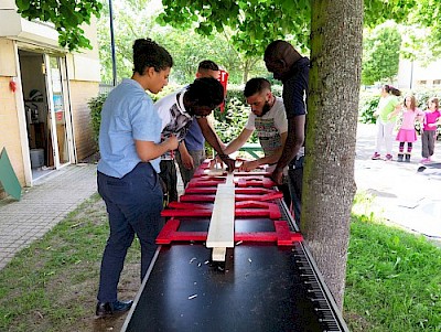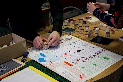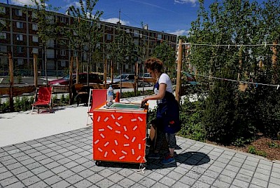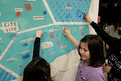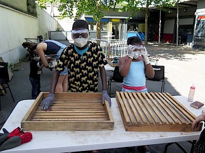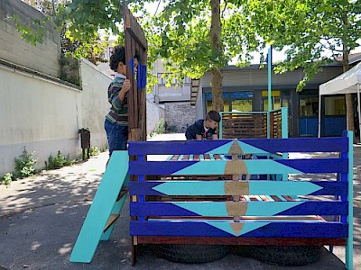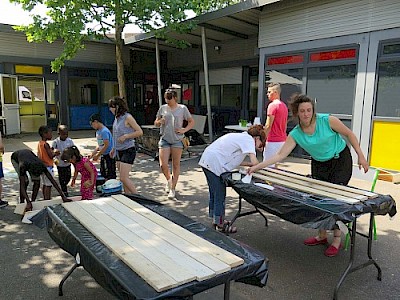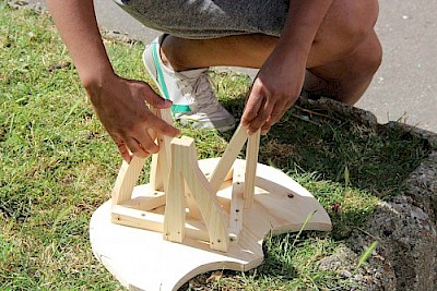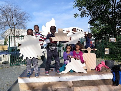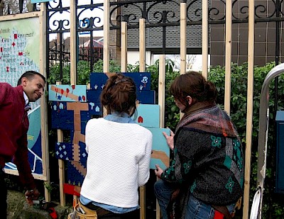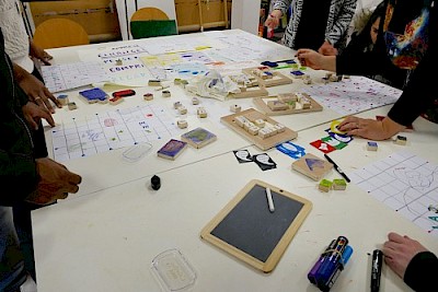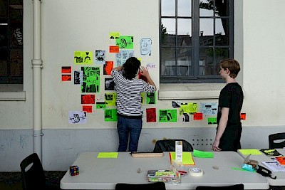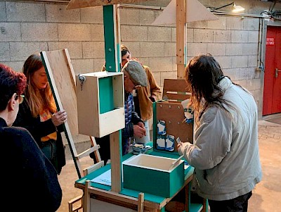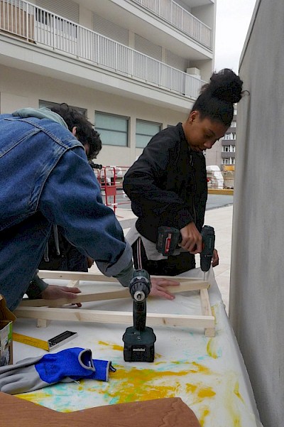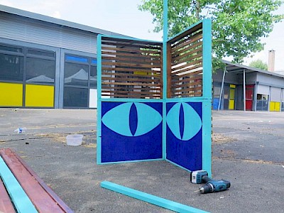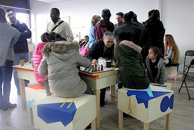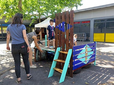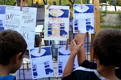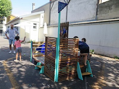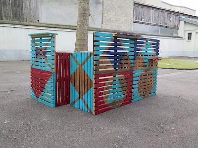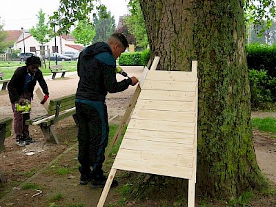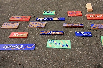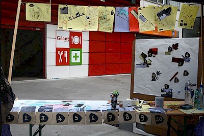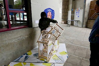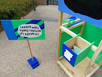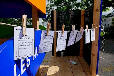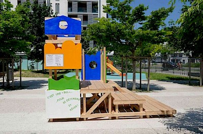 Invités par le Conseil Citoyen, le collectif est intervenu sur 3 temps d’ateliers-chantiers pour concevoir et fabriquer un arbre à idées avec les habitant.es du quartier. L’arbre à idées, installé dans la Maison du Projet, permet de questionner les habitants sur leur quartier. Les quatre faces du dispositif offrent la possibilité aux petits…