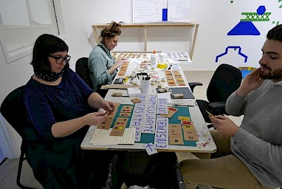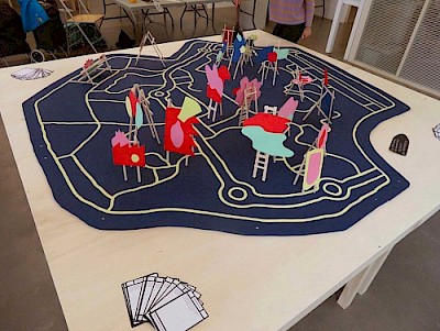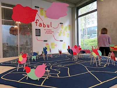 Dans le cadre de l’exposition “Le Génie des Lieux” à l’Espace d’Art la Terrasse à Nanterre, notre collectif a créé une installation de présentation du projet “Fabul 2” pour valoriser le projet et les productions réalisées par les participant.es. Nous avons réalisé une grande table basse sur laquelle sont disposées l’ensemble des maquettes…