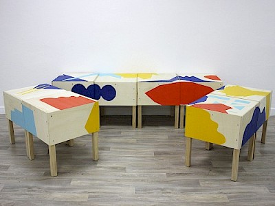 M.A.P - Mobilier d’Amusement Participatif : Une collection de mobilier ludique Nous avons construit des objets modulables et ludiques afin de permettre plus aisément une communication sociale par le jeu, découvrir sous un nouvel angle son espace quotidien, faire jouer adultes et enfants. La création d'un mobilier à double emploi s'est donc insérée…
