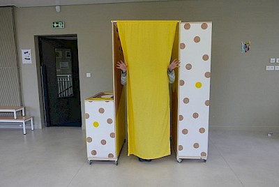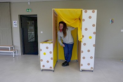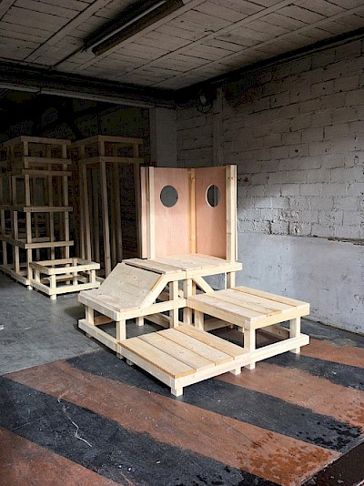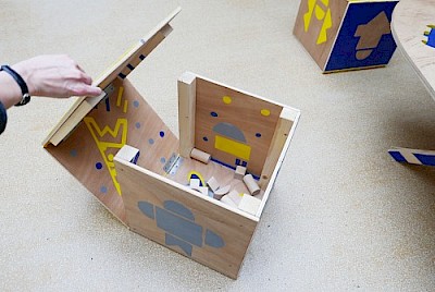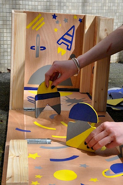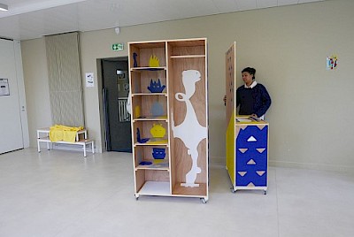 M.A.P - Mobilier d’Amusement Participatif Meubles à double emploi utilité/jeu pour la Maison de Quartier du Petit-Ivry. - La faille de transformation : malle et cabine de déguisement. - Nous avons construit des objets modulables et ludiques afin de permettre plus aisément une communication sociale par le jeu et faire jouer adultes et enfants, tout…