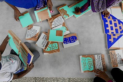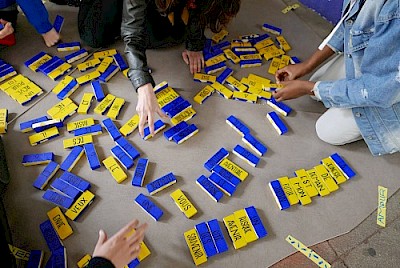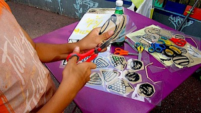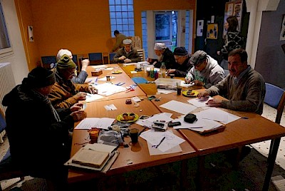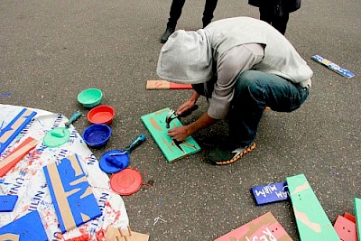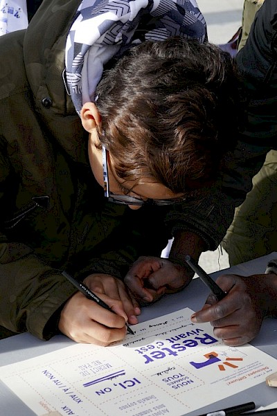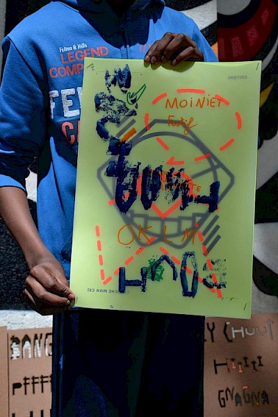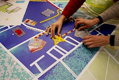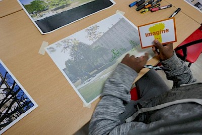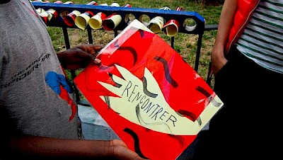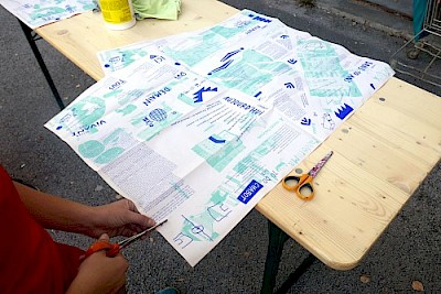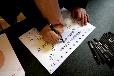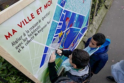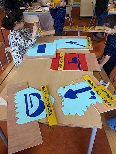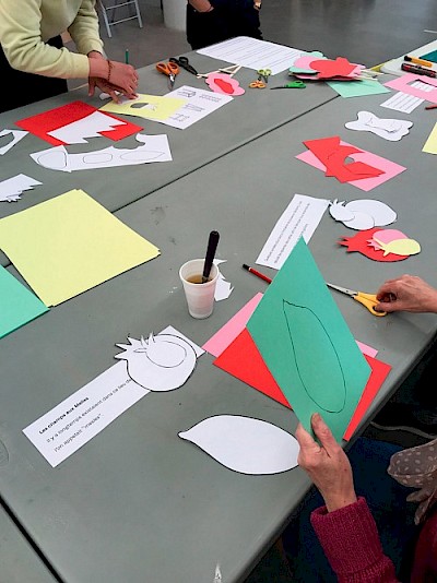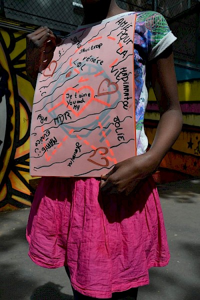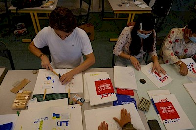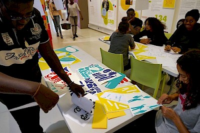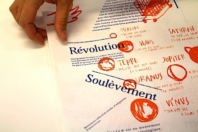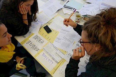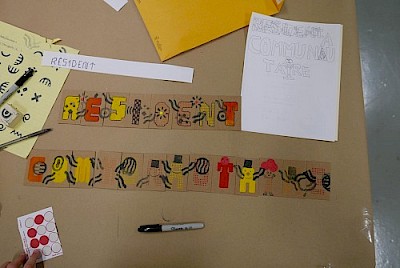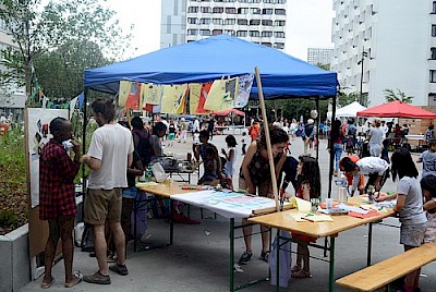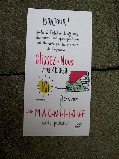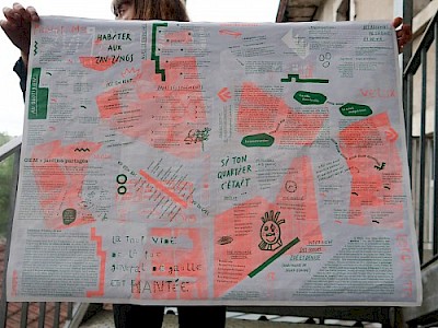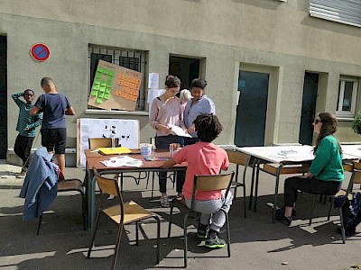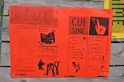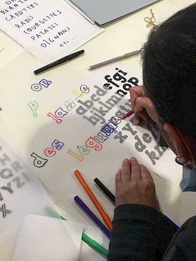 Atelier d'affiches volantes Nous avons proposé un atelier d’affiches où sont mêlées recherche textuelle et création graphique. Autour de la revendication individuelle et collective de la vie du quartier, les participants ont été amenés à débattre et échanger. Ils ont complété ensuite des phrases insolentes et vivantes pour traduire leur envies…