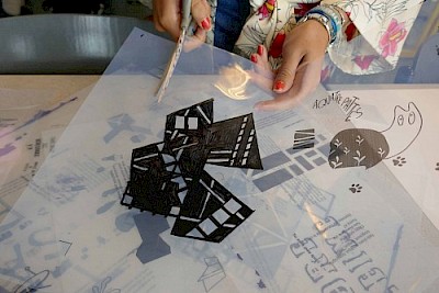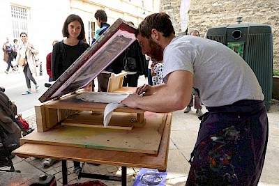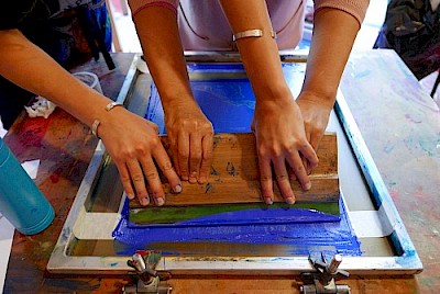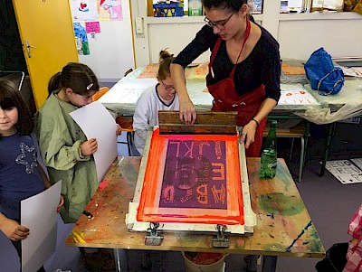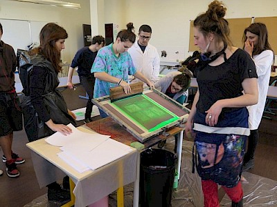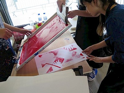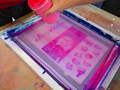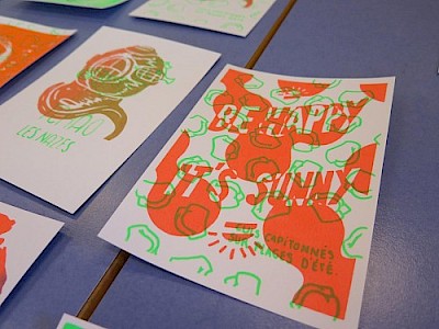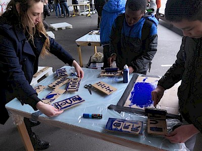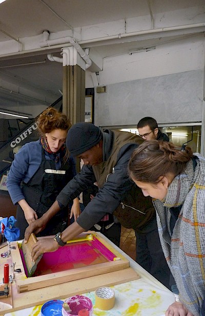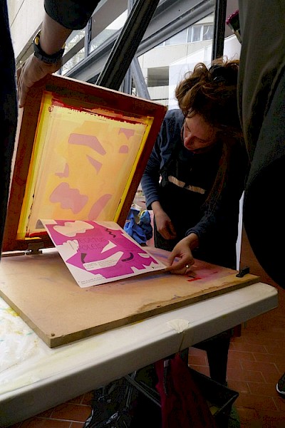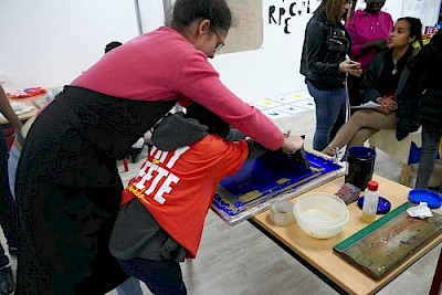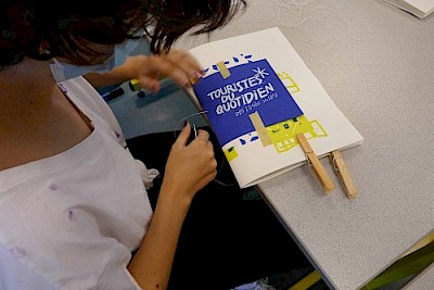 Atelier de sérigraphie personnalisable Nous avons pensé un atelier pour sensibiliser à la sérigraphie, qui est un procédé d’impression technique complexe et peu flexible. Chaque participant est invité à concevoir une représentation personnelle de la ville, à dessiner son image, puis à fabriquer à la main son typon à l’aide d’une technique…
