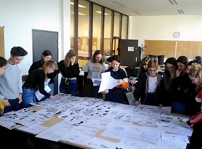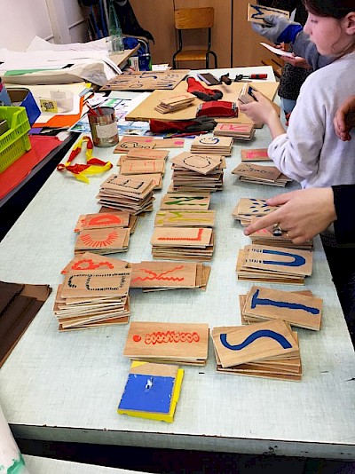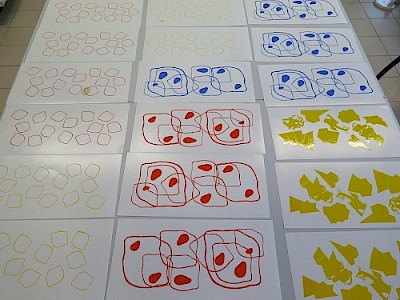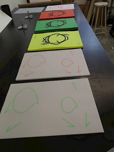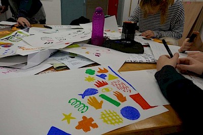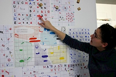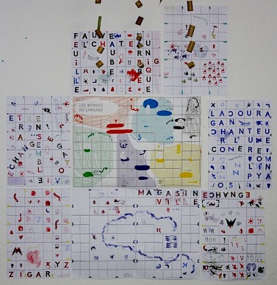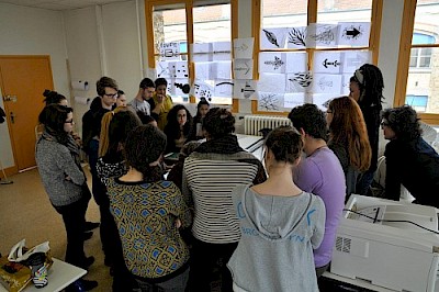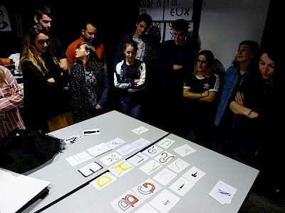 Invention en groupes d'un nouveau langage visuel A partir des thèmes des différents projets des étudiants, nous proposons sur le long de la semaine de créer un projet plus transversal et collectif, en petits groupes. Après une matinée de réflexion et de recherches de références, nous proposons d'inventer une langue / un système…