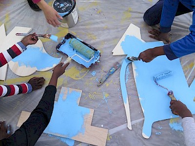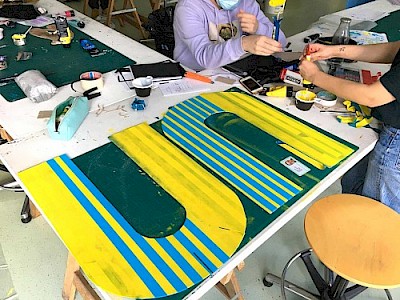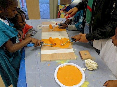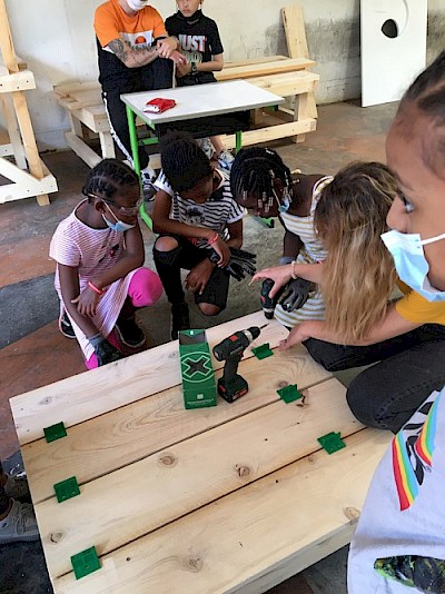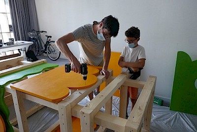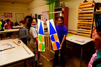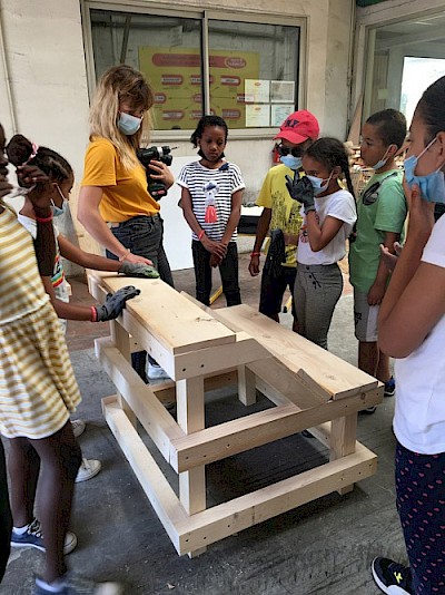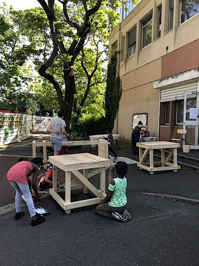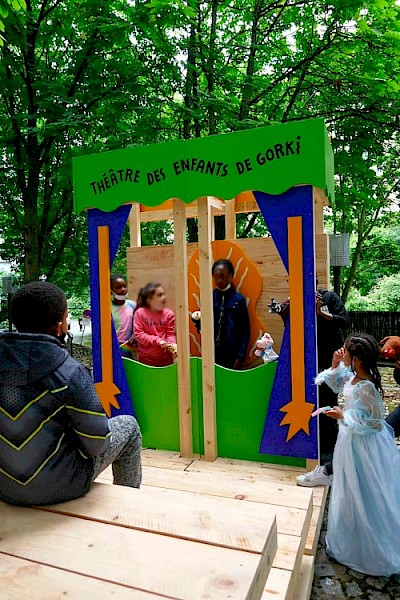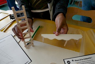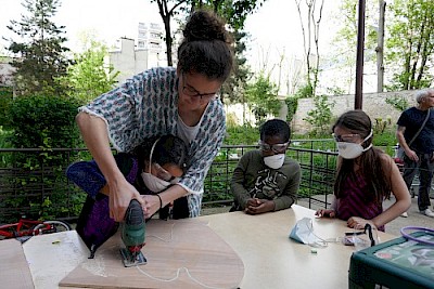 Dans le cadre des stages Archichouette proposés par le CAUE 95, les enfants de la Maison de Quartier d’Argenteuil ont réalisé une série de maquettes pour définir les usages d’un futur kiosque à roulettes pour l’Esplanade Salvador Allende. En février 2022, le temps d’une semaine, nous sommes venu·es pour réaliser un chariot en bois , peint grandeur…
