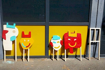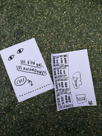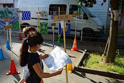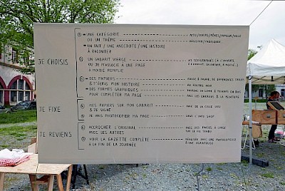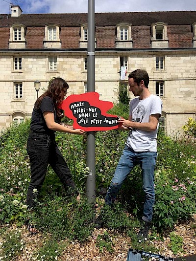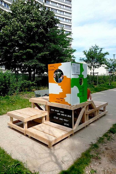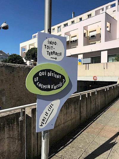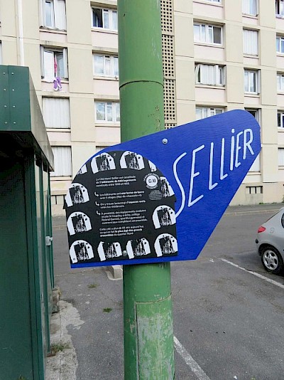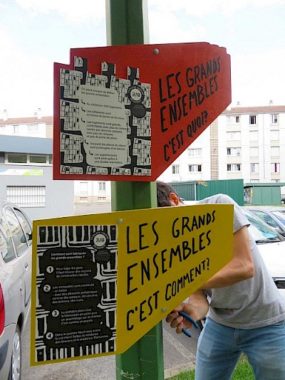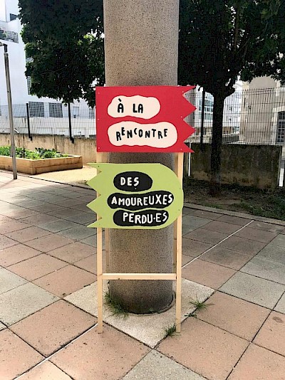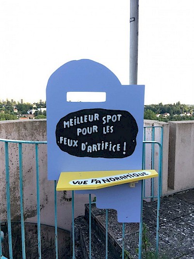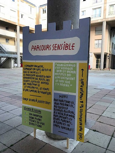 Notre collectif a été invité par Chantier Public à Poitiers en juillet 2021, pour une résidence artistique dans la résidence Rivaud. Pendant une semaine, nous avons construit une signalétique pour lire 4 prismes très particuliers de la cité : les bons plans pour y découvrir les trésors cachés ; les directions pour y retrouver les amoureux perdus…