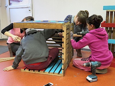 M.A.P - Mobilier d’Amusement Participatif Meubles à double emploi utilité/jeu pour la Maison de Quartier du Petit-Ivry. - Les vaisseaux du futur : table basse de construction. - Nous avons construit des objets modulables et ludiques afin de permettre plus aisément une communication sociale par le jeu et faire jouer adultes et enfants, tout…