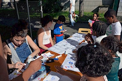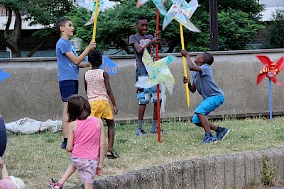 Fête des voisins aux Longs Sillons ! L'idée était de convier les habitants du quartier et des rues alentours à partir de 17H pour se retrouver en toute simplicité et convivialité. Nous avons apporté quelques jeux pour petits et grands, ainsi qu'un atelier de gazette, mis un peu de musique et quelques guirlandes lumineuses, et invité tout le monde…