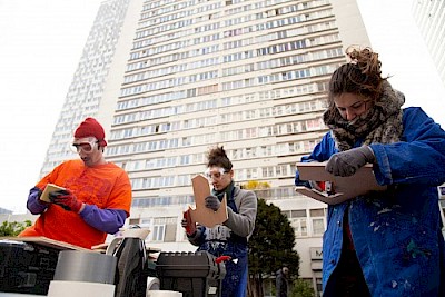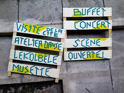 Sous l’invitation des étudiant·es du master PCEP (Projet Culturel dans l’Espace Public), notre collectif est venu pendant une semaine participer à la fabrication de plusieurs panneaux de signalétique pour habiller la cité Rose à Nanterre. Production finales : 1 série de 8 panneaux “tryptique” 1 série de 6 panneaux “onomatopée” 12 éléments en bois…