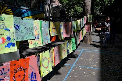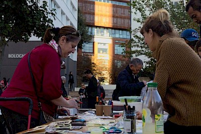 Dans le cadre de l'événement “Ô Berges d’été” à Massy, notre collectif est intervenu lors du premier week-end d’ouverture pour proposer un atelier créatif autour d’une grande fresque participative de 3 panneaux (ville, paysage et portraits). Les participant·es étaient invité·es à remplir ces trois fresques, constituant un triptyque, à l’aide…