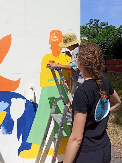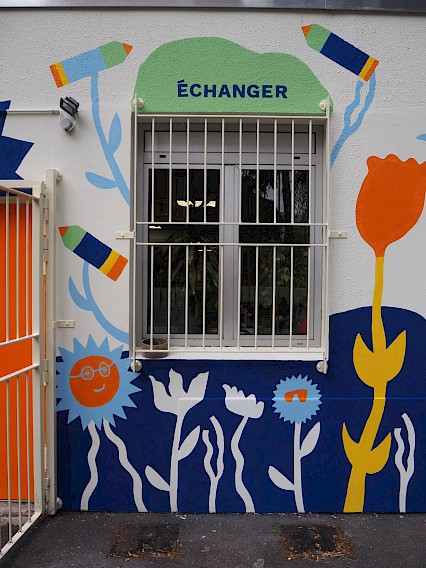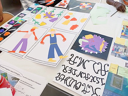 pour leur investissement leur engagement dans le projet. Nous avons fait l'experience de la création cvollective, du débat, du choix! Nous avons tenté au mieux de restitué les productions réalisées en atelier pour créer un ensemble visuel harmonieux et cohérent. Un grand merci l'équipe du Centre Social pour leur accueil chaleureux,leur confiance et et leur générosité, Un remerciement à Nassim, Atoumina Merci à CDC habitat, à l'Apes et Seqens pour leur confiance